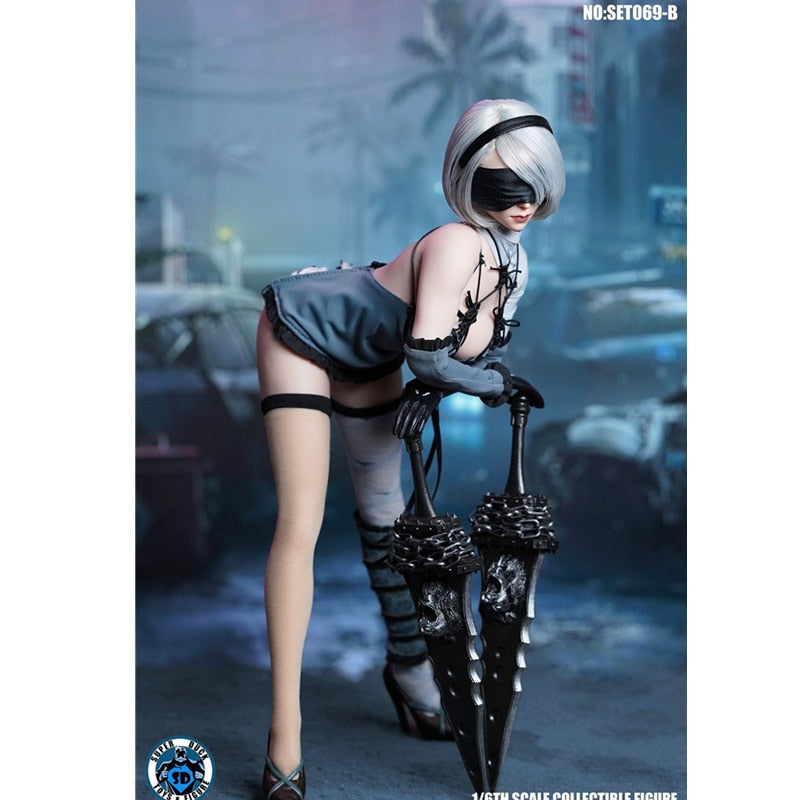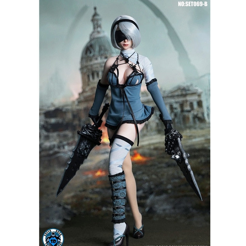 1/6 Scale Figure Robot Killer 2B Head Sculpt Costume Clothes Model For 12 Inches Action Figure Doll Body SUPER DUCK SET069