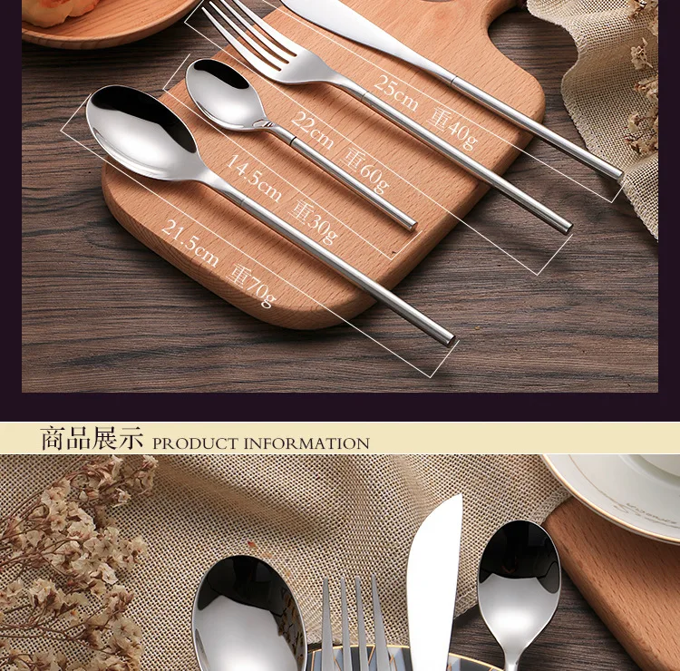 24 Pieces Set Includes: 6 knives 6 forks 6 spoons 6 tea spoons