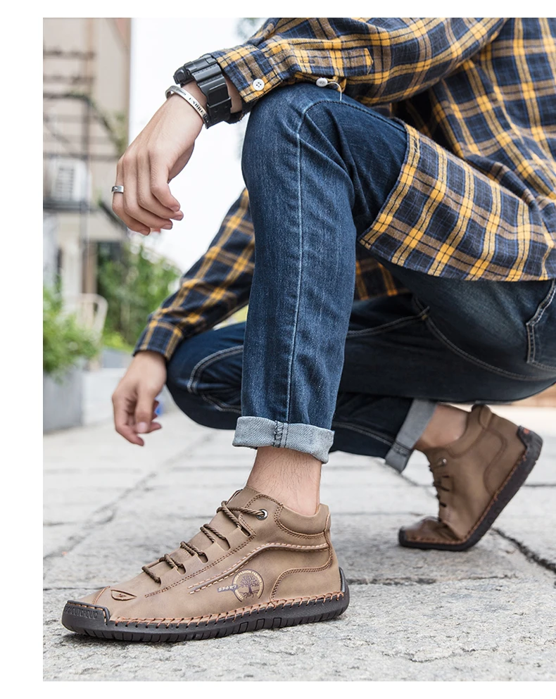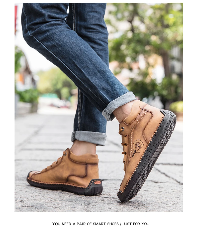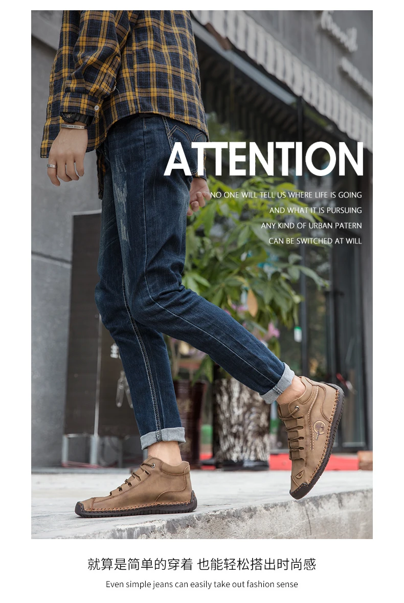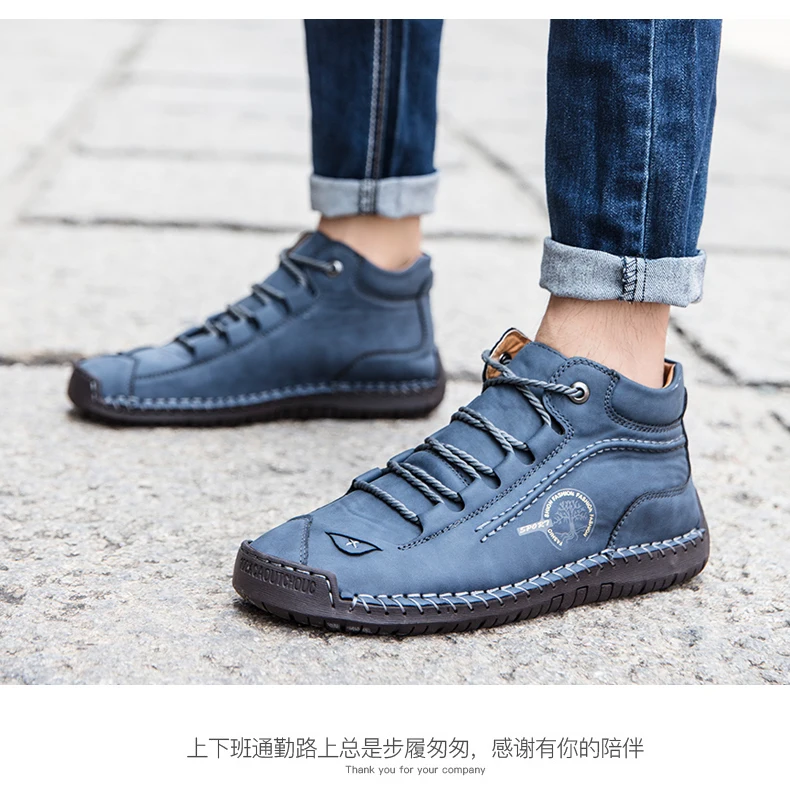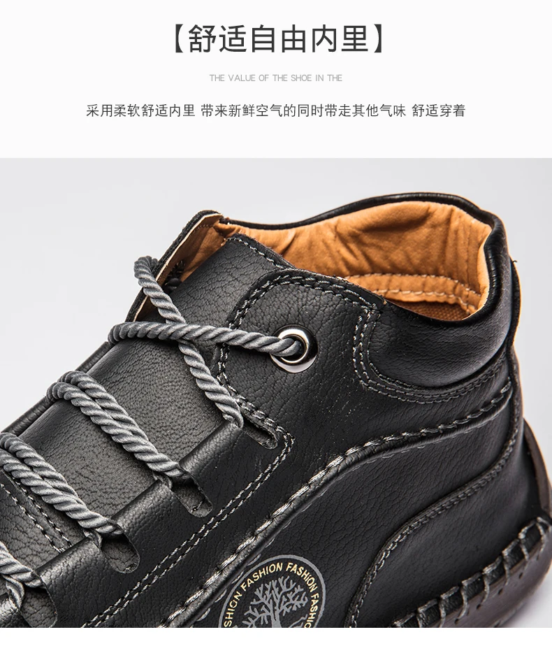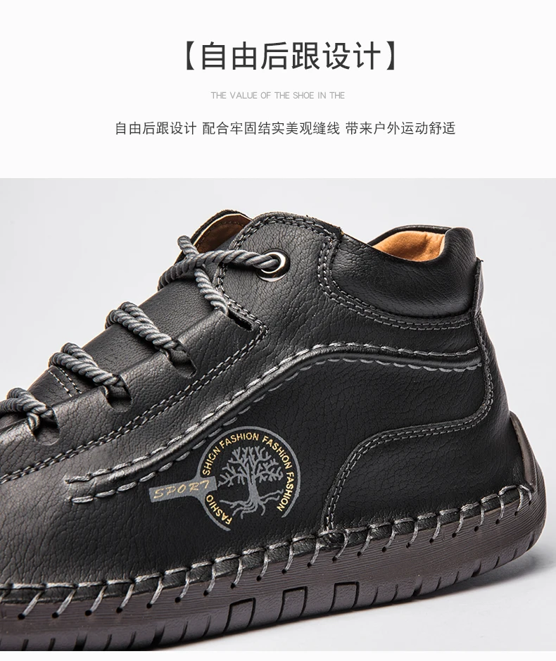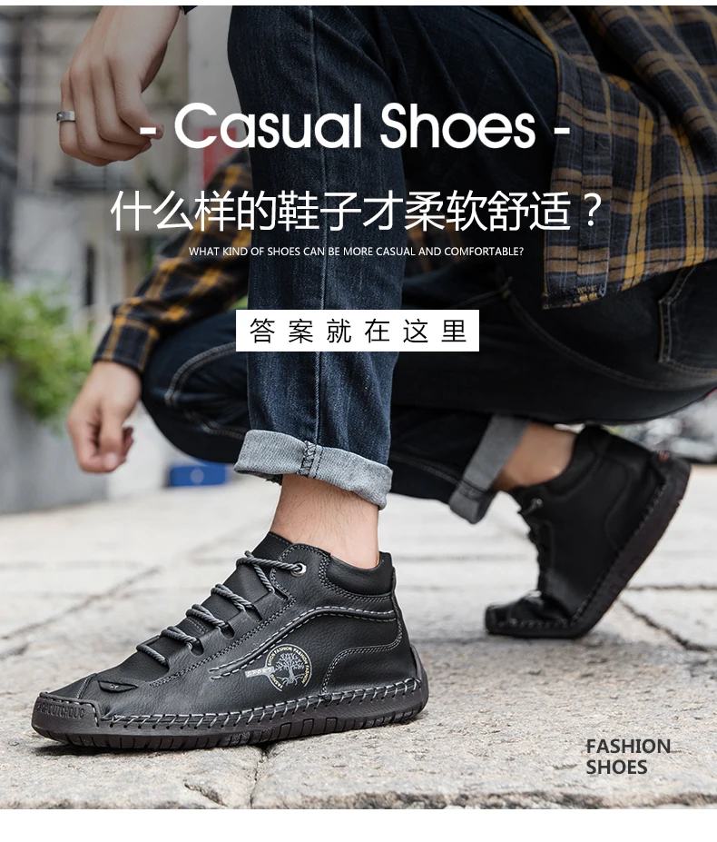 2020 Men Shoes Autumn Non Slip Comfy Ankle Boots Hand Stitching Casual Men Loafers Soft Sole Breathable Flats Shoes Female Boots