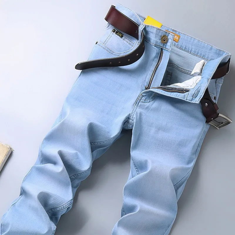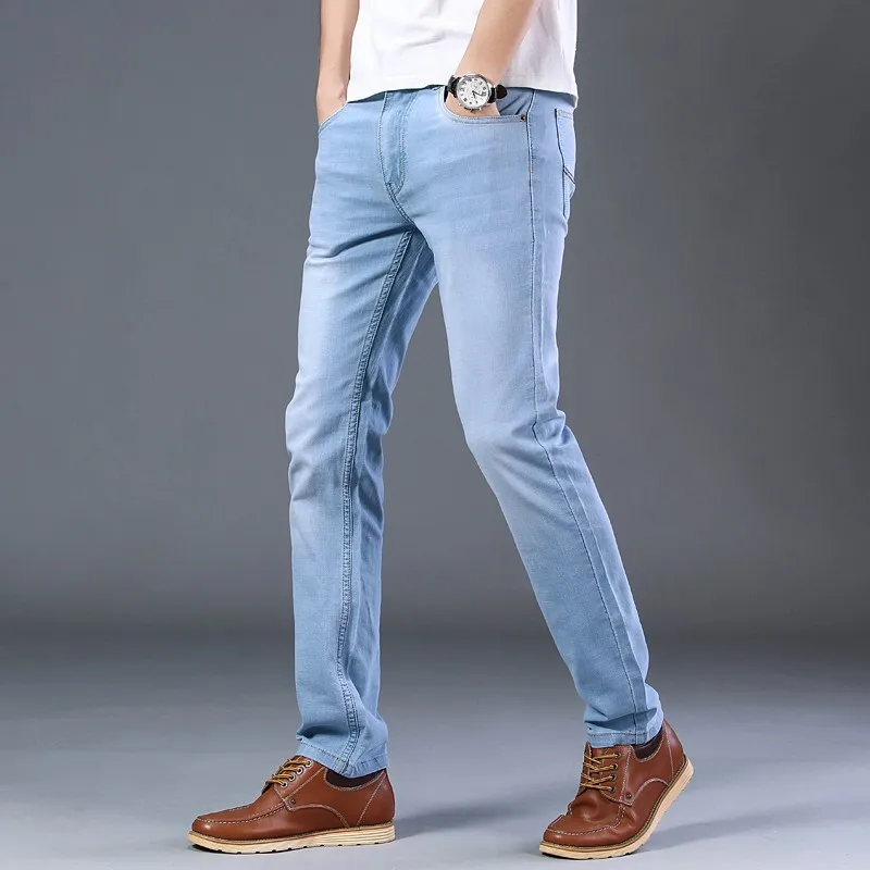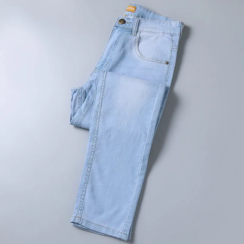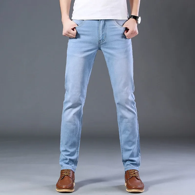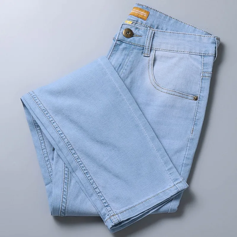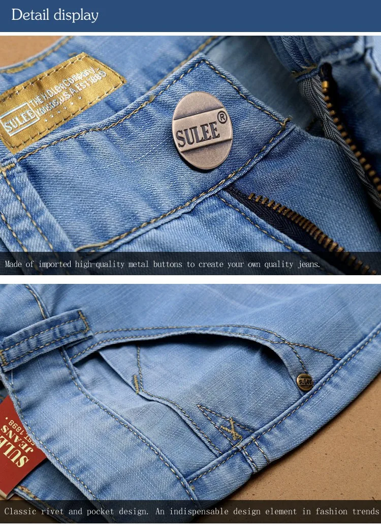 2021 Sulee Brand Top Classic Style Men Spring Summer Jeans Business Casual Light Blue Stretch Cotton Jeans Male Brand Trousers