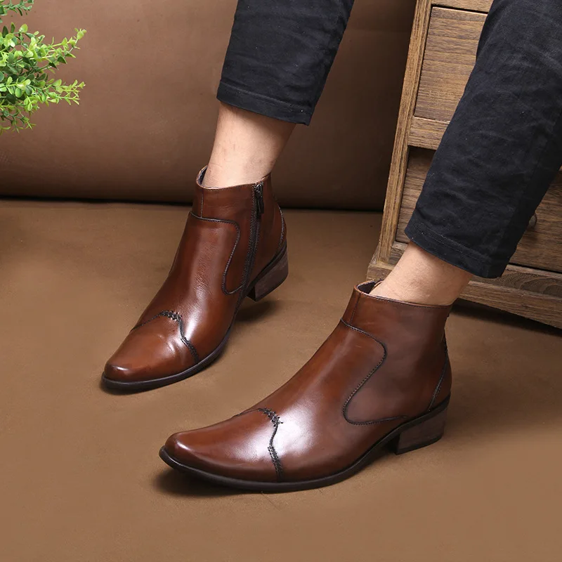 2022 Autumn Early Winter Men Boots Handmade Luxury Genuine Leather Men Formal Shoes 4cm Heels Ankle Botas for Male Plus Size 44