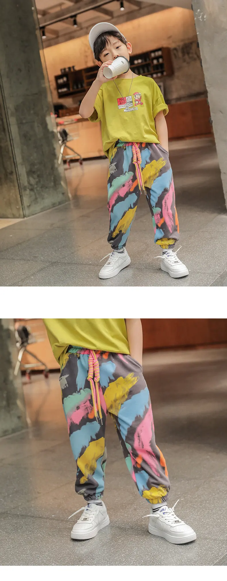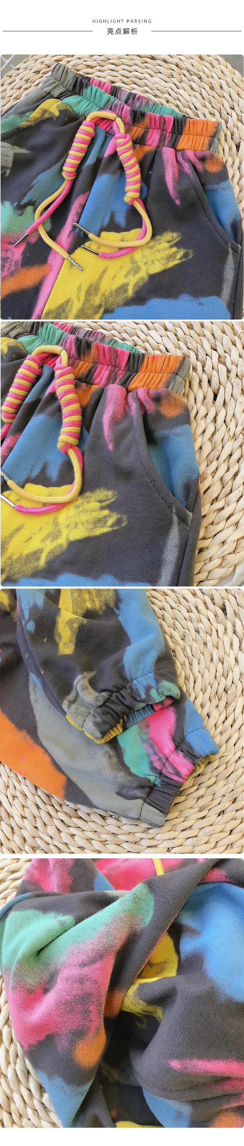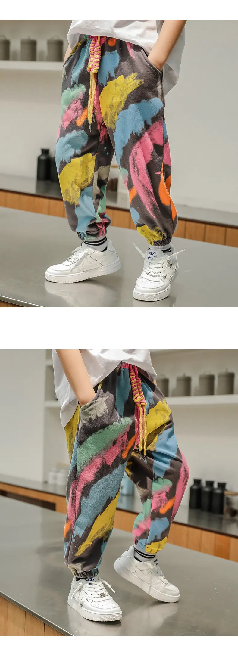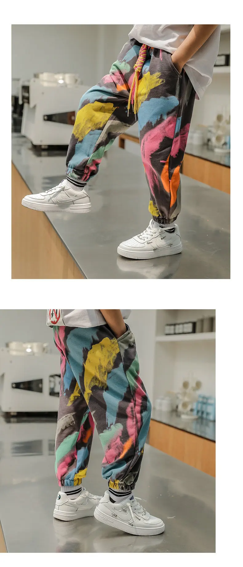 2022 New Arrival Boys Tie Dye Casual Pants Spring Fashion Hot Deals Graffiti Painting Print Sweatpants Cotton Kids Long Trousers