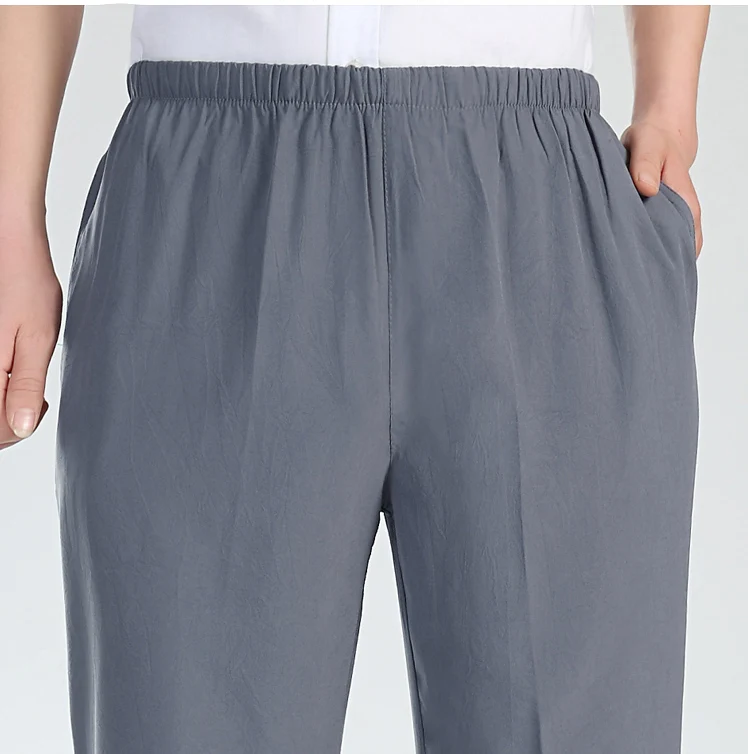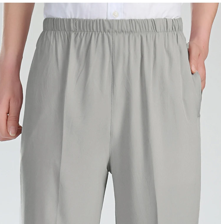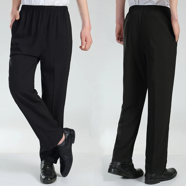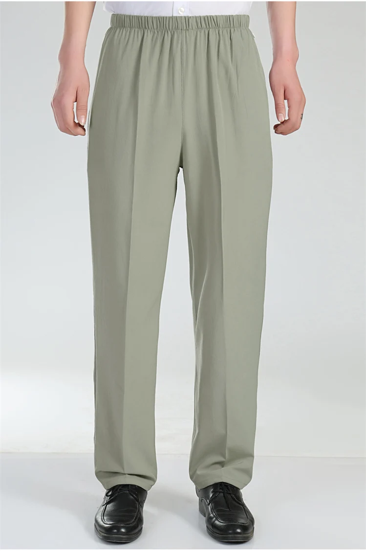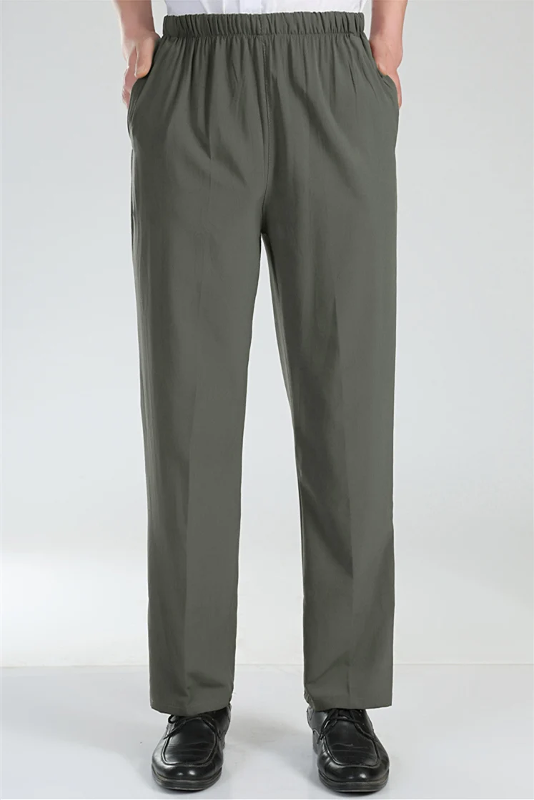2022 New Casual Summer Lightweight Pants Men Mid Waist Straight Long Trouser Solid Color Elastic Waist Business Men Black Pants