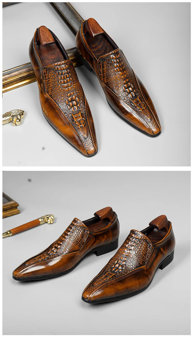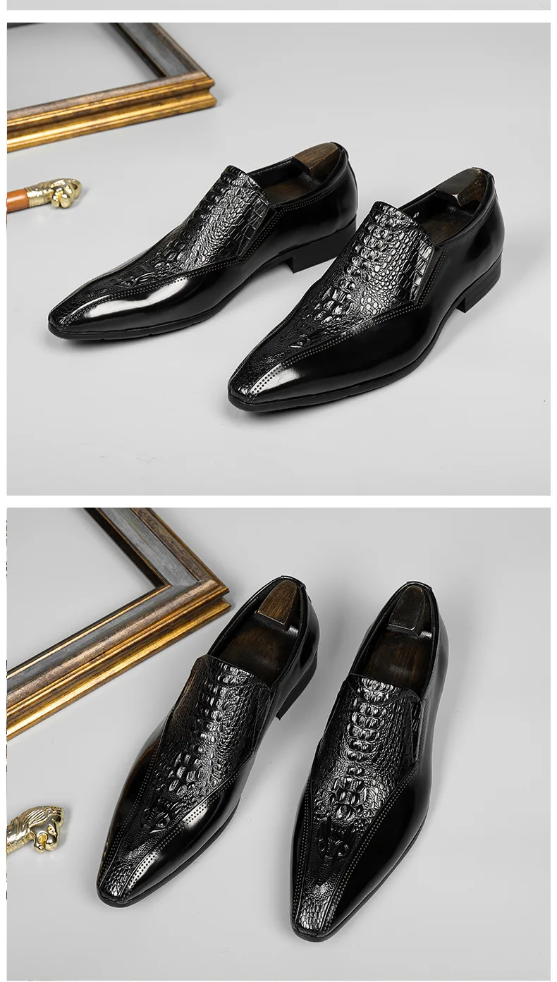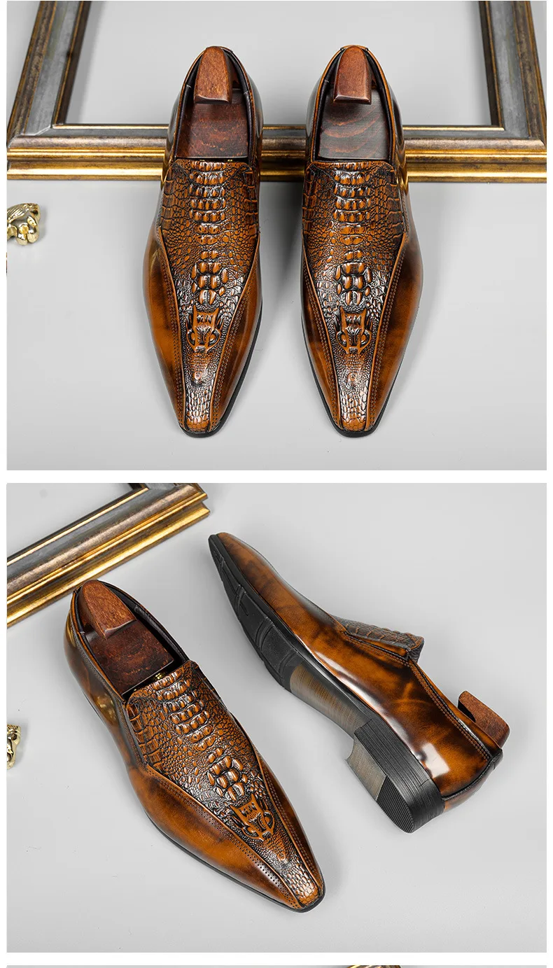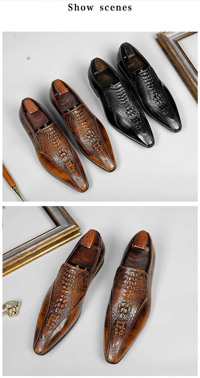 2022 Real Patent Leather Men's Dress Shoes Fashion Crocodile Pattern Slip on Brown Black Luxury Handmade Genuine Leather Shoes