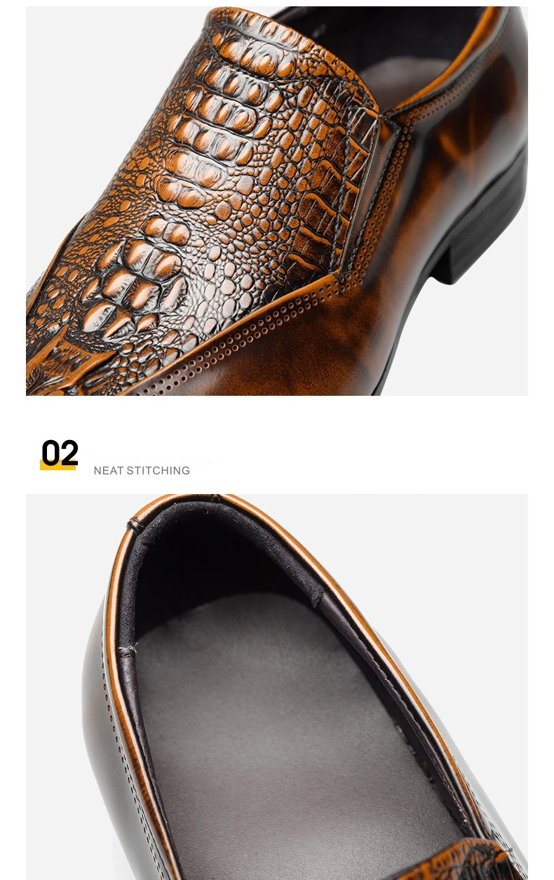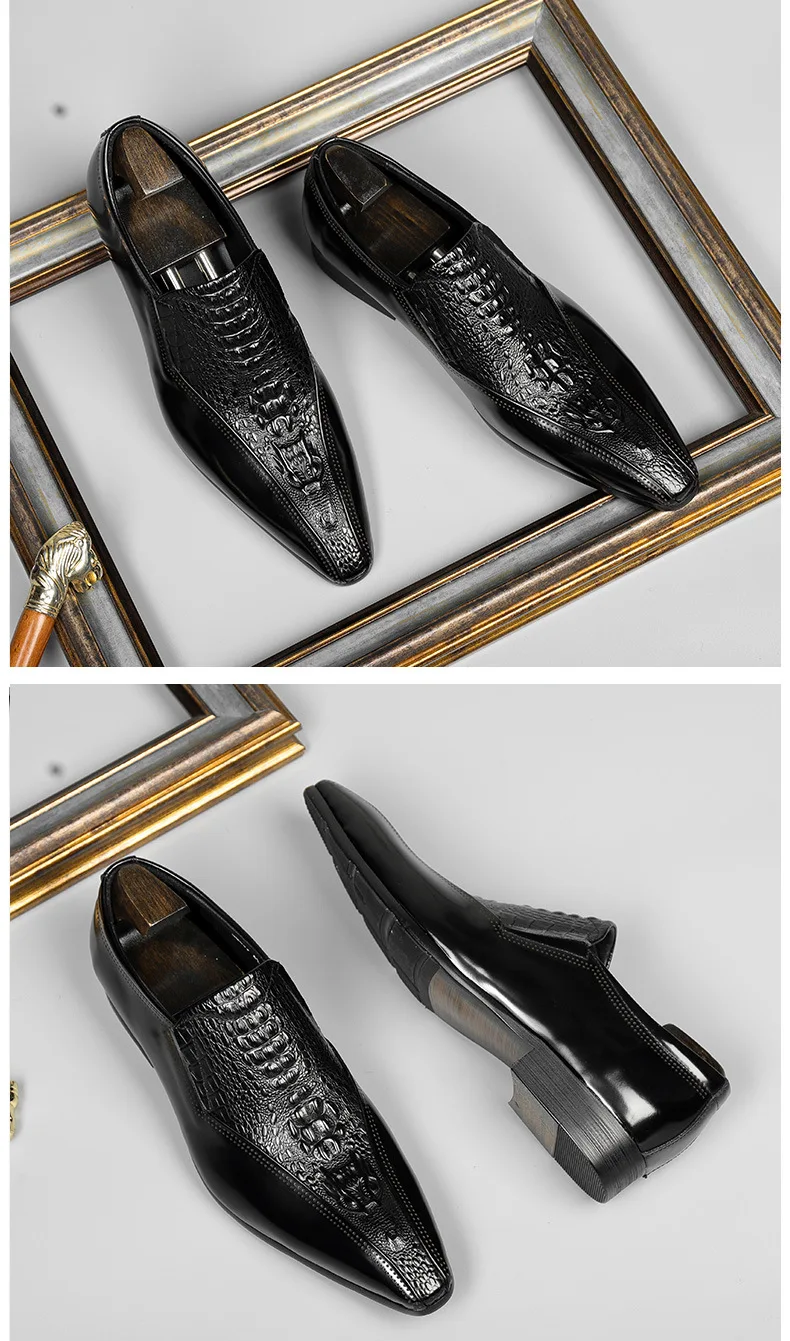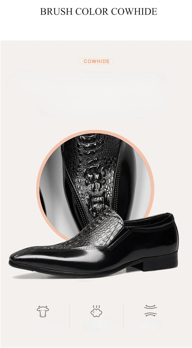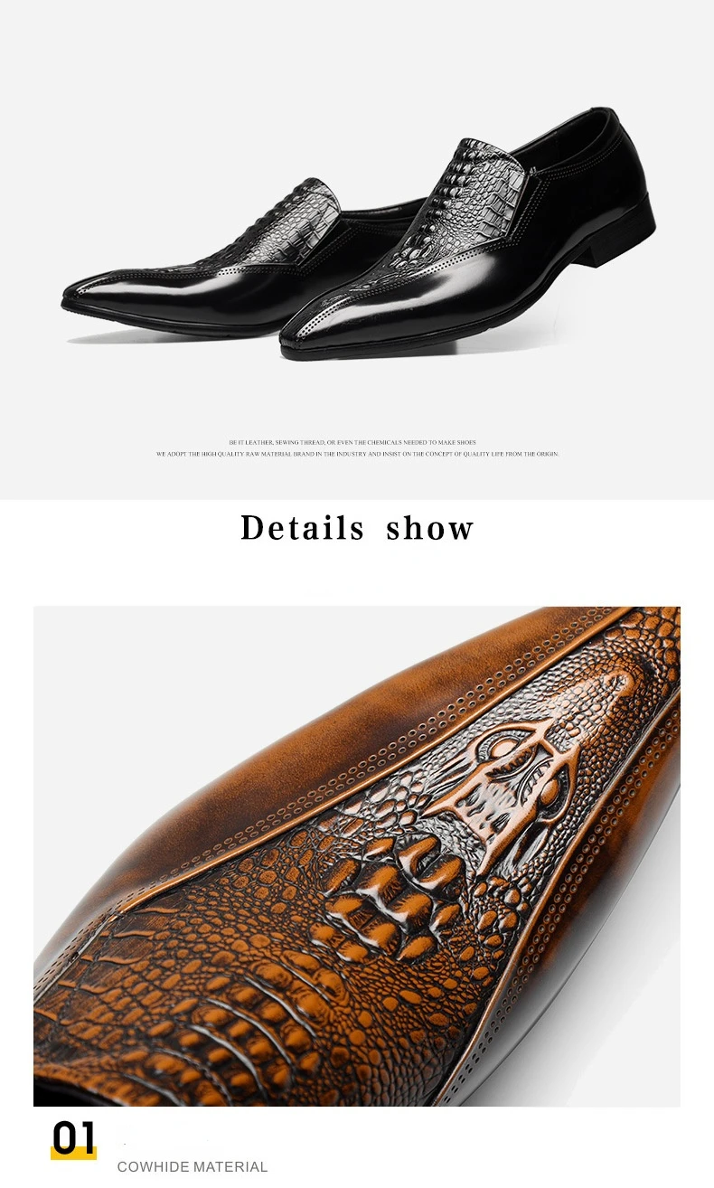 2022 Real Patent Leather Men's Dress Shoes Fashion Crocodile Pattern Slip on Brown Black Luxury Handmade Genuine Leather Shoes
