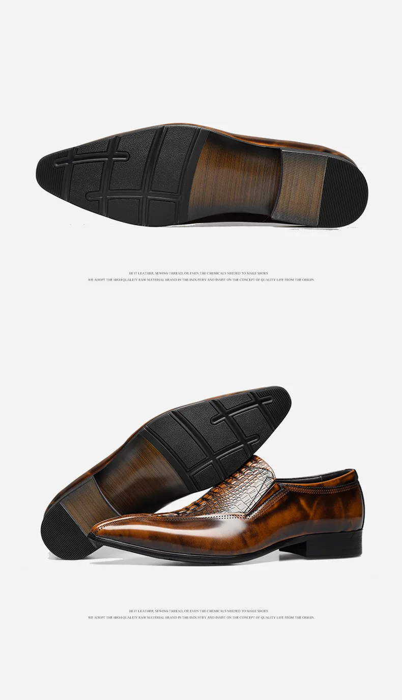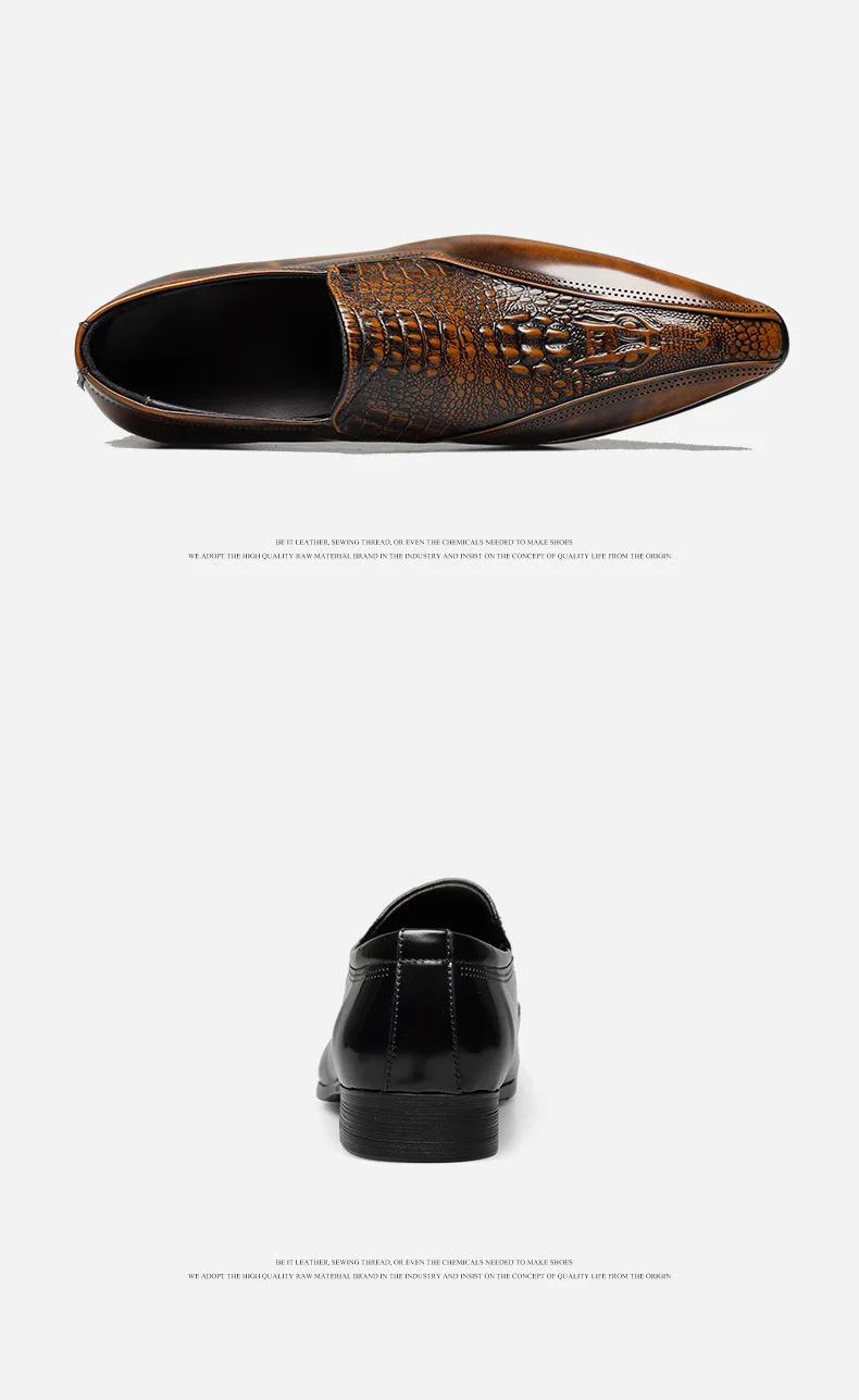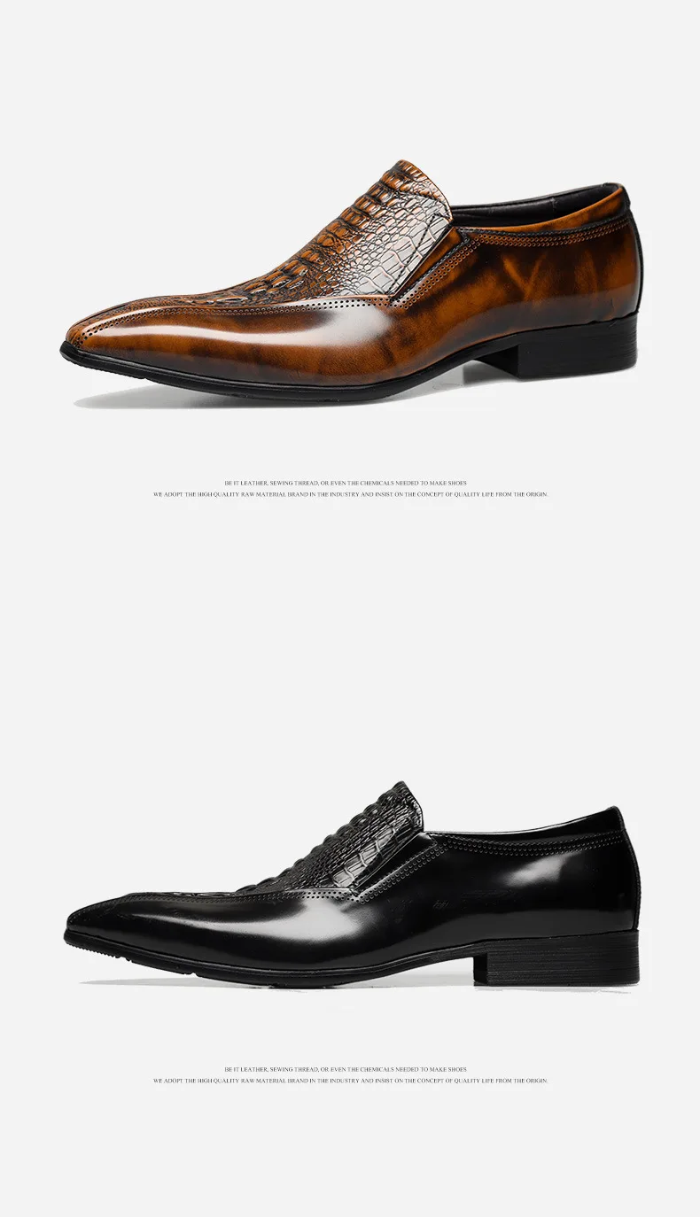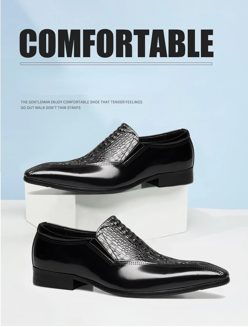 2022 Real Patent Leather Men's Dress Shoes Fashion Crocodile Pattern Slip on Brown Black Luxury Handmade Genuine Leather Shoes