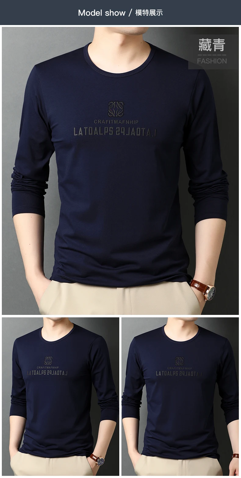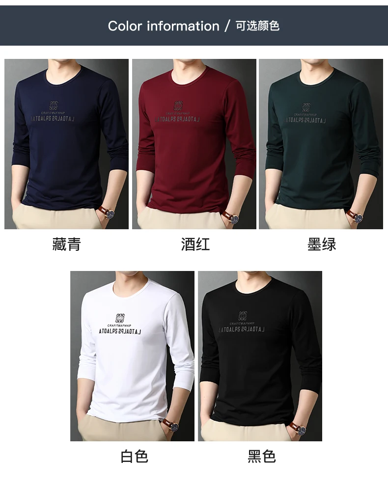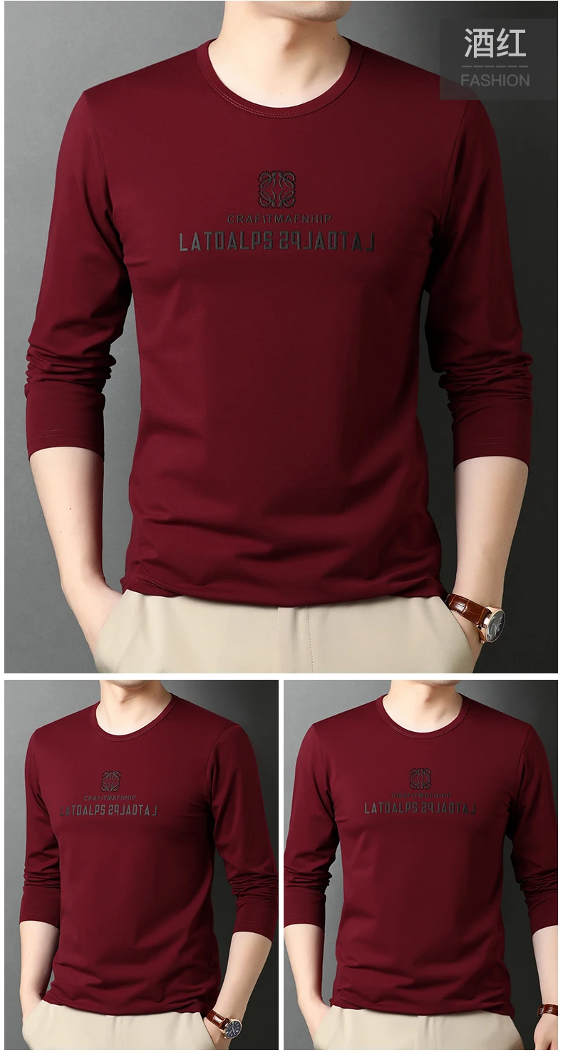 2022 Top Quality New Fashion Brand 95% Cotton 5% Spandex Mens Casual Long Sleeve t Shirt Plain Round Neck Tops Men Clothes