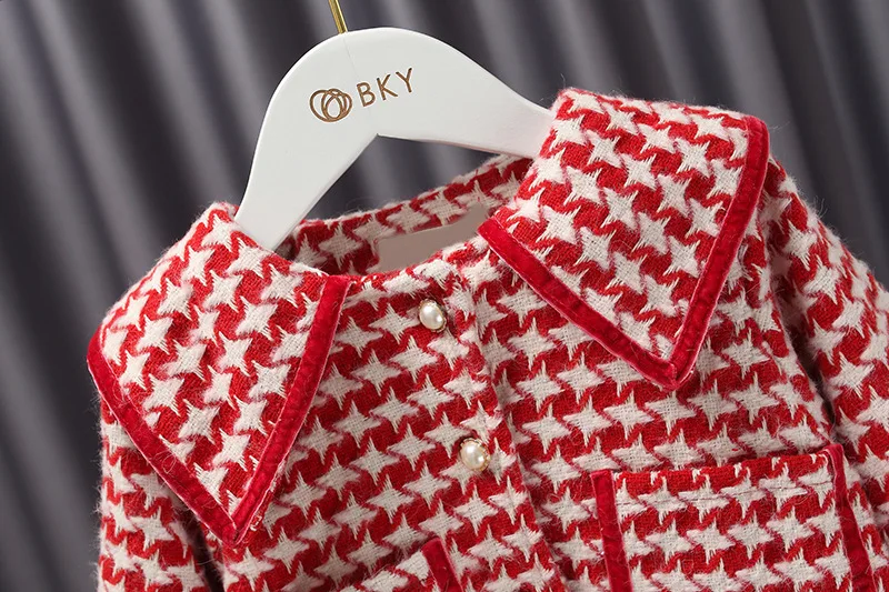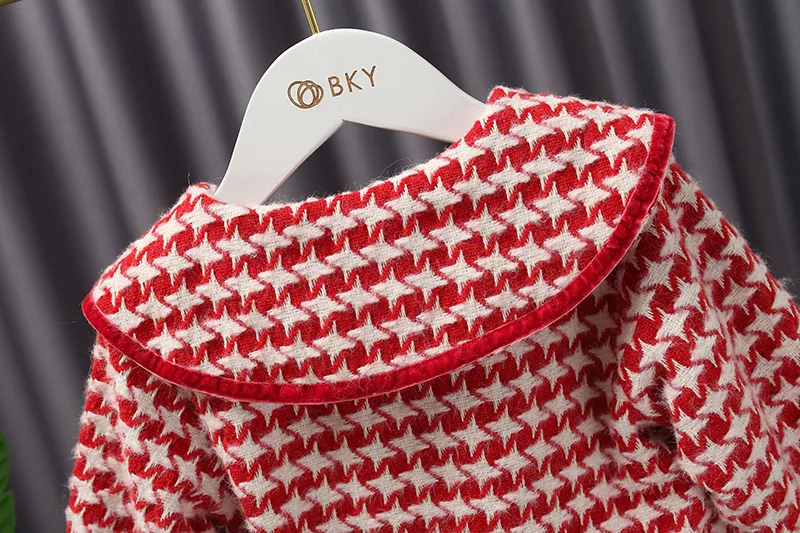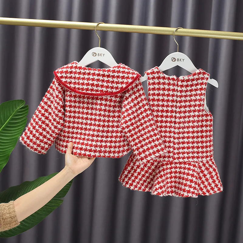 2022 Winter Baby Sweet Princess Dress Two-piece Suit Plus Velvet Vest Dress Woolen Plaid Jacket Set For 1-6 Year Girls Outwear