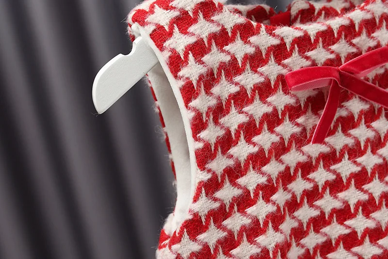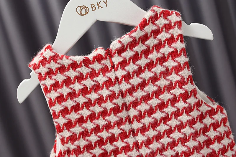Winter Baby Sweet Princess Dress Two-piece Suit Plus Velvet Vest Dress Woolen Plaid Jacket Set For 1-6Year Girls Outwear