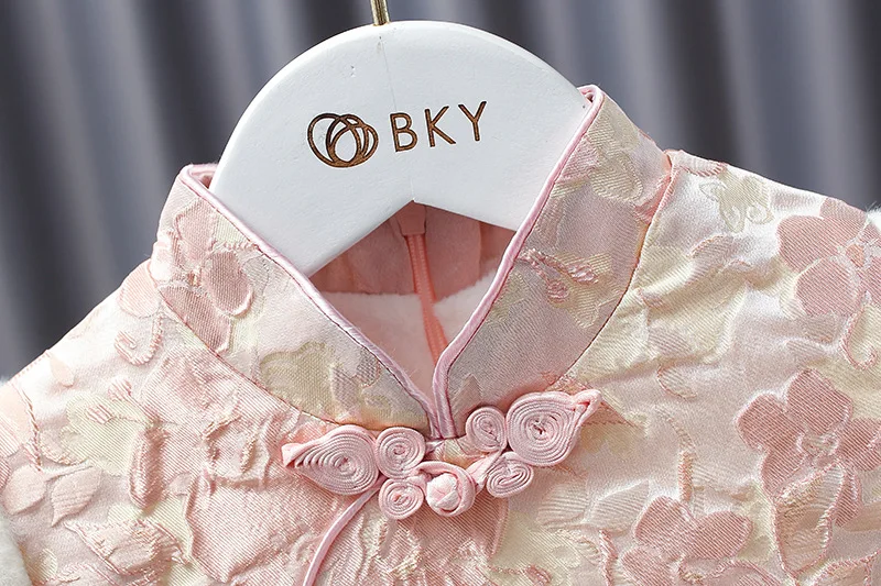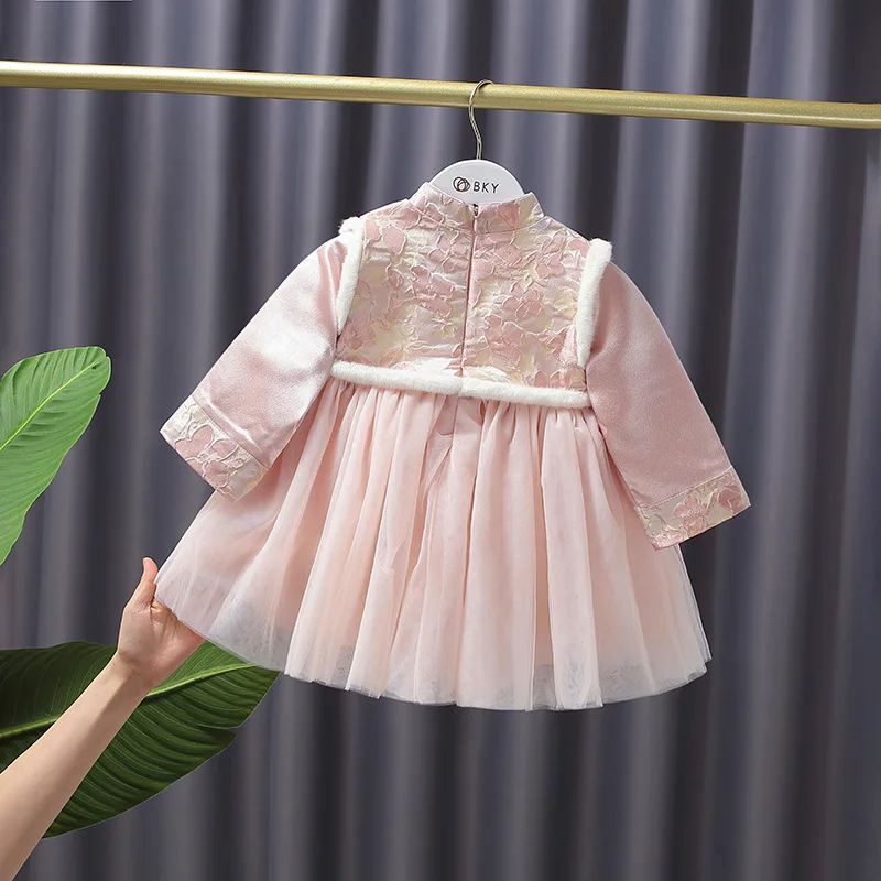 Winter Warm 12M 24M 1-6 Years Child Hanfu Thicken Vintage Traditional Tang Suit New Year Cheongsam Dress For Kids Baby Girl