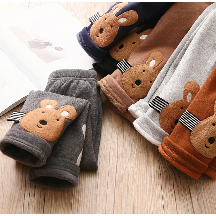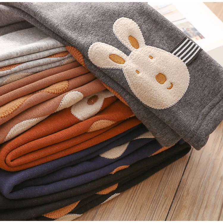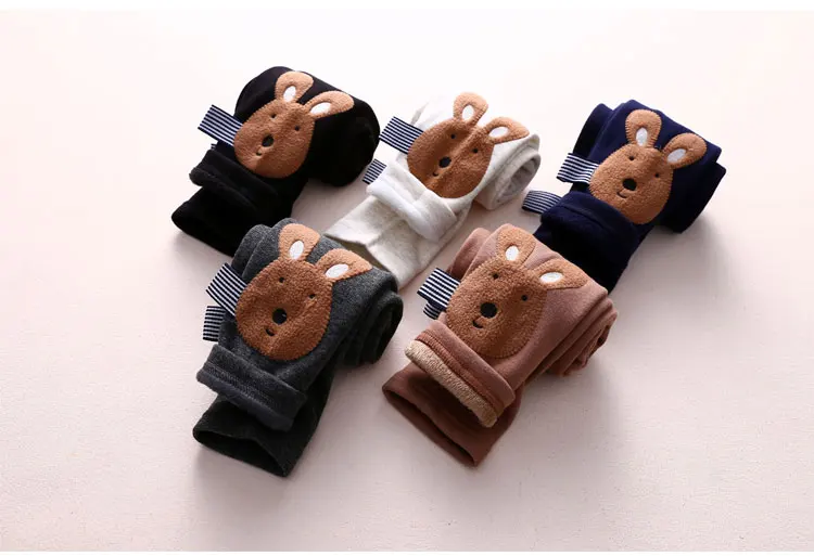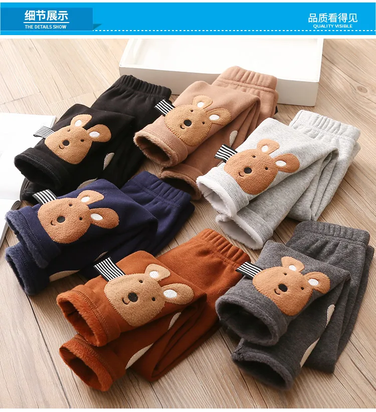 2022 Winter Warm 2 3 4 5 6 8 10 Years Children Cute Color Cartoon Patchwork Plus Velvet Thickening Leggings For Kids Baby Girls