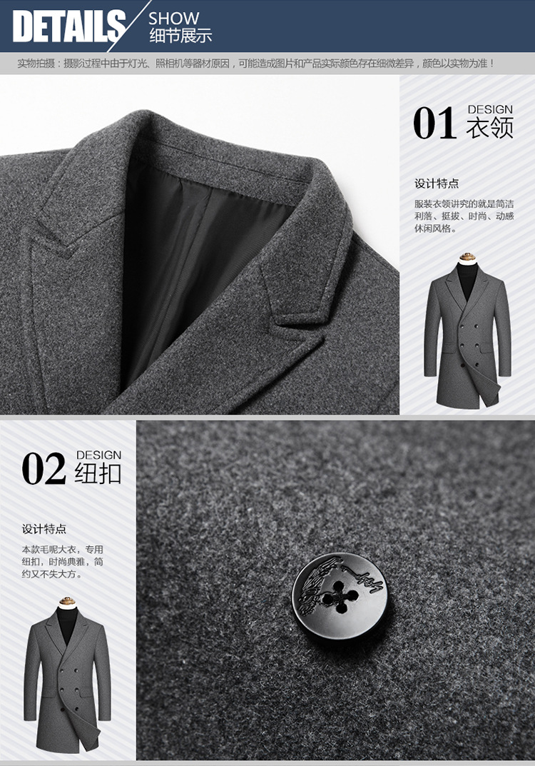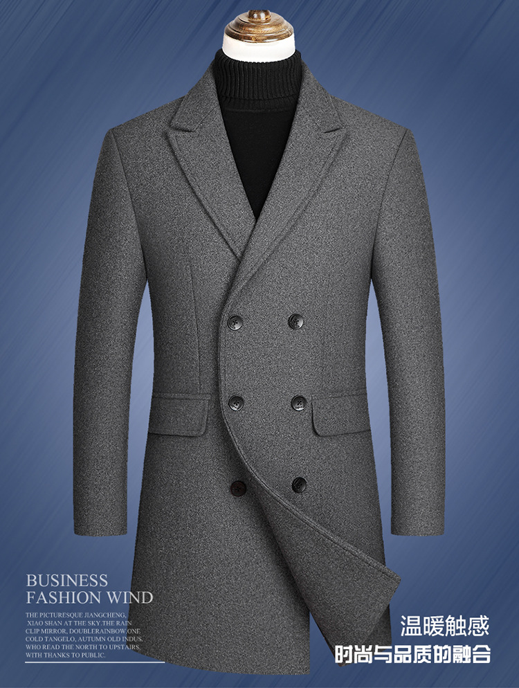 2023 Autumn and Winter Boutique Woolen Black Gray Classic Solid Color Thick Warm Men's Extra Long Wool Trench Coat Male Jacket