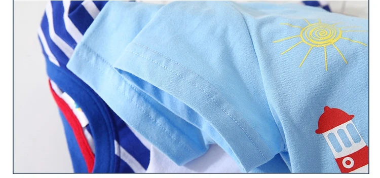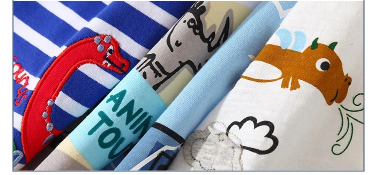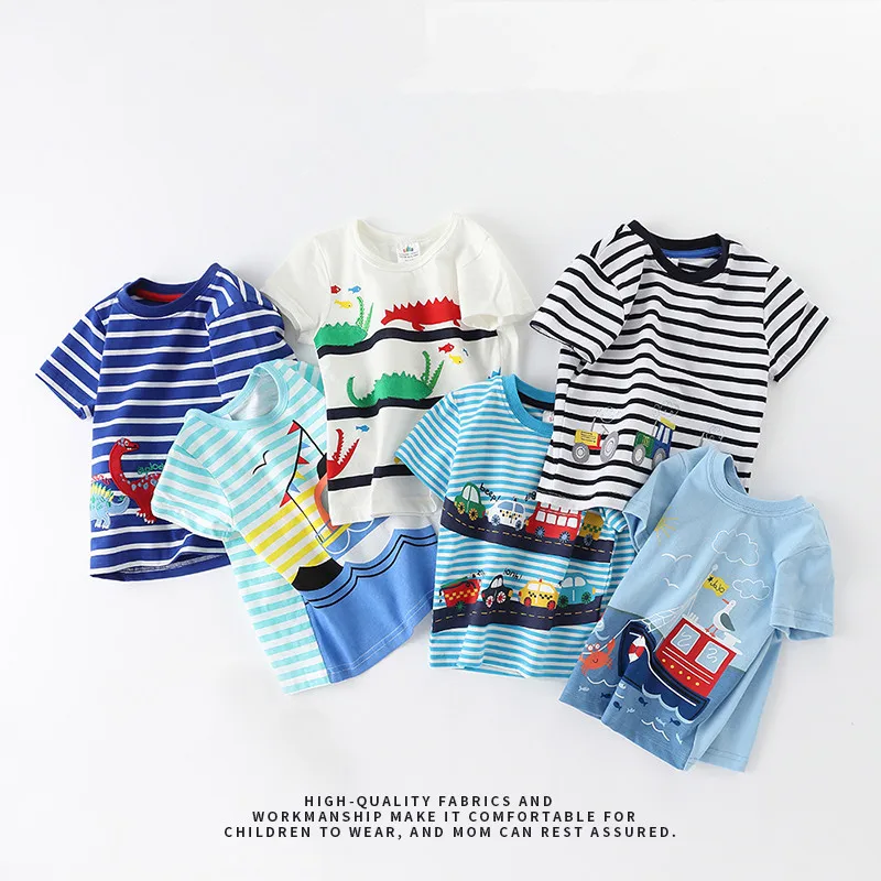 2021 Summer 2-10T Children'S Birthday Clothing Dinosaur Car Striped Print Short Sleeve Basic Tops Cartoon T Shirt For Kids Boy