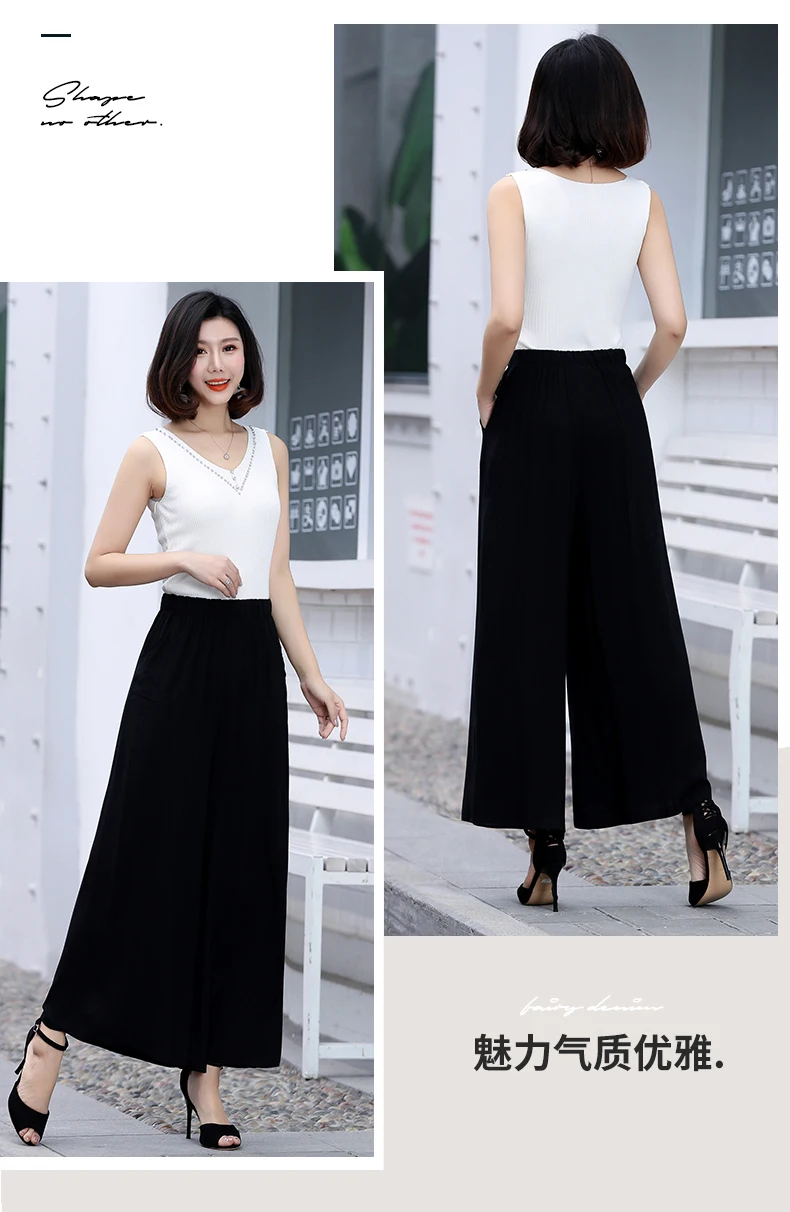 2023 Summer Wide Leg Pants Women Casual Elastic Waist Wide Leg Trousers with Print Ankle-Lengtht High Waist Pants Summer Bottoms