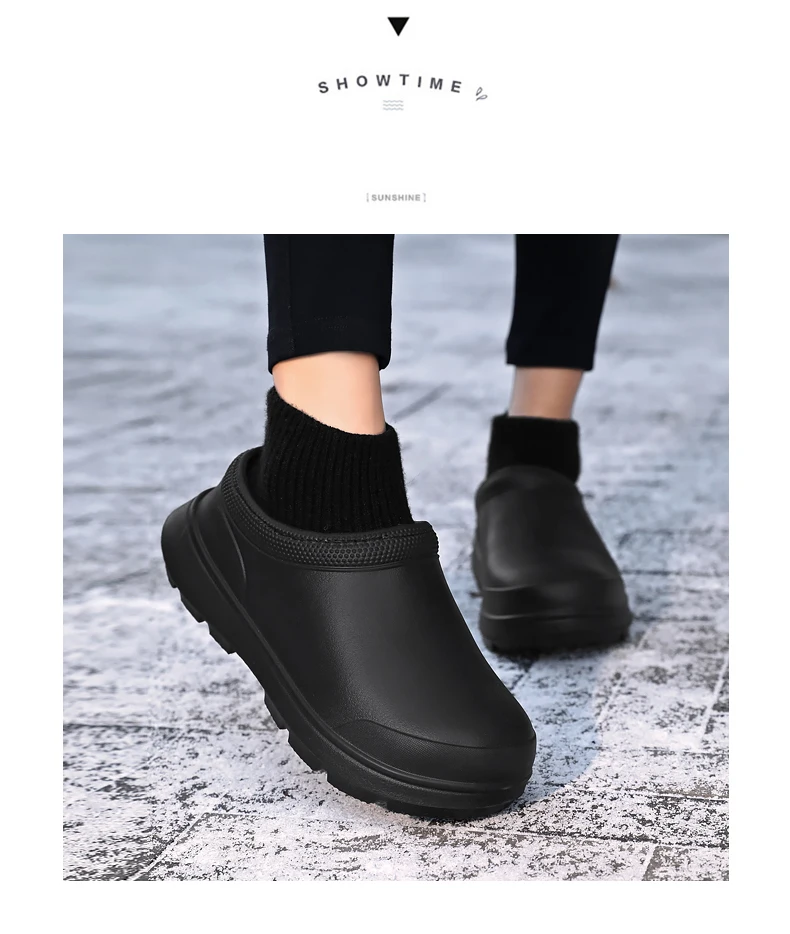 2023 Winter Fur Hotel Kitchen Men Women Non-slip Waterproof Oil-proof Work Cotton Cook Chef Garden Beach Shoes Plus Size 37~46