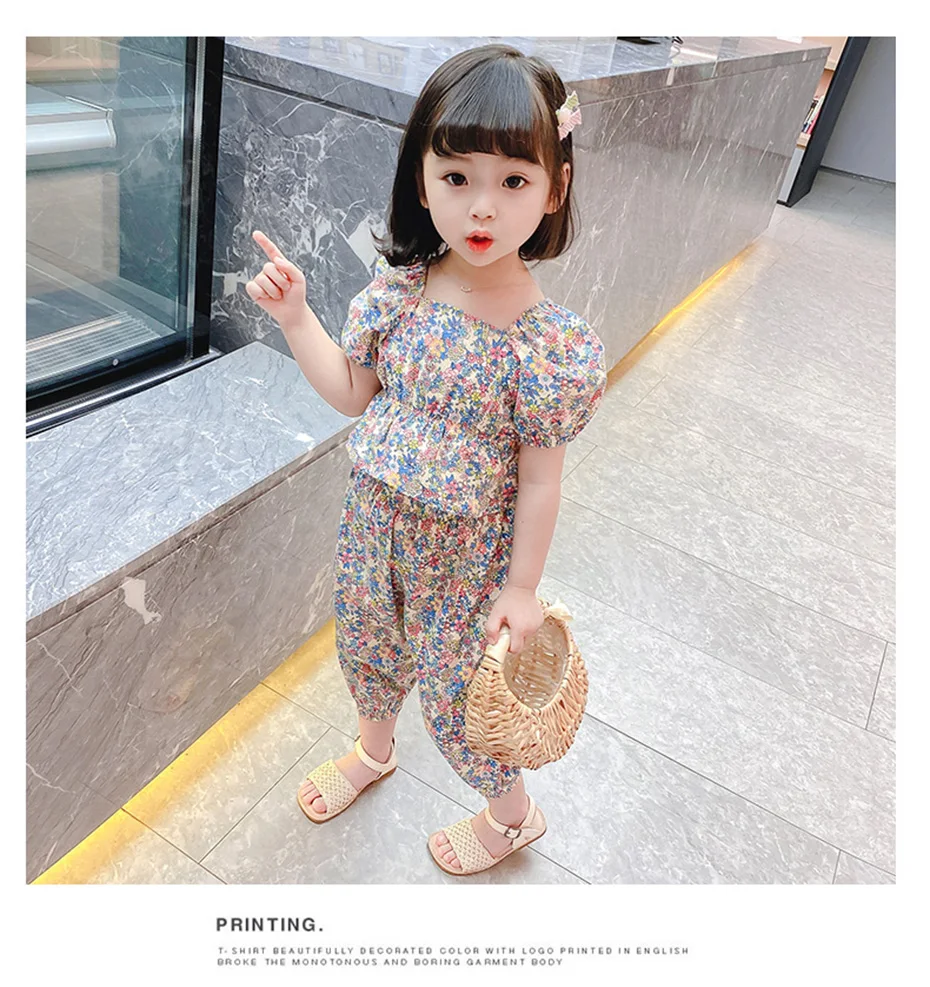 2pcs/set 2022 Children Clothes Floral Tshirt + Pants For Girls Casual Style Big Girls Clothes Summer Kids Tracksuit