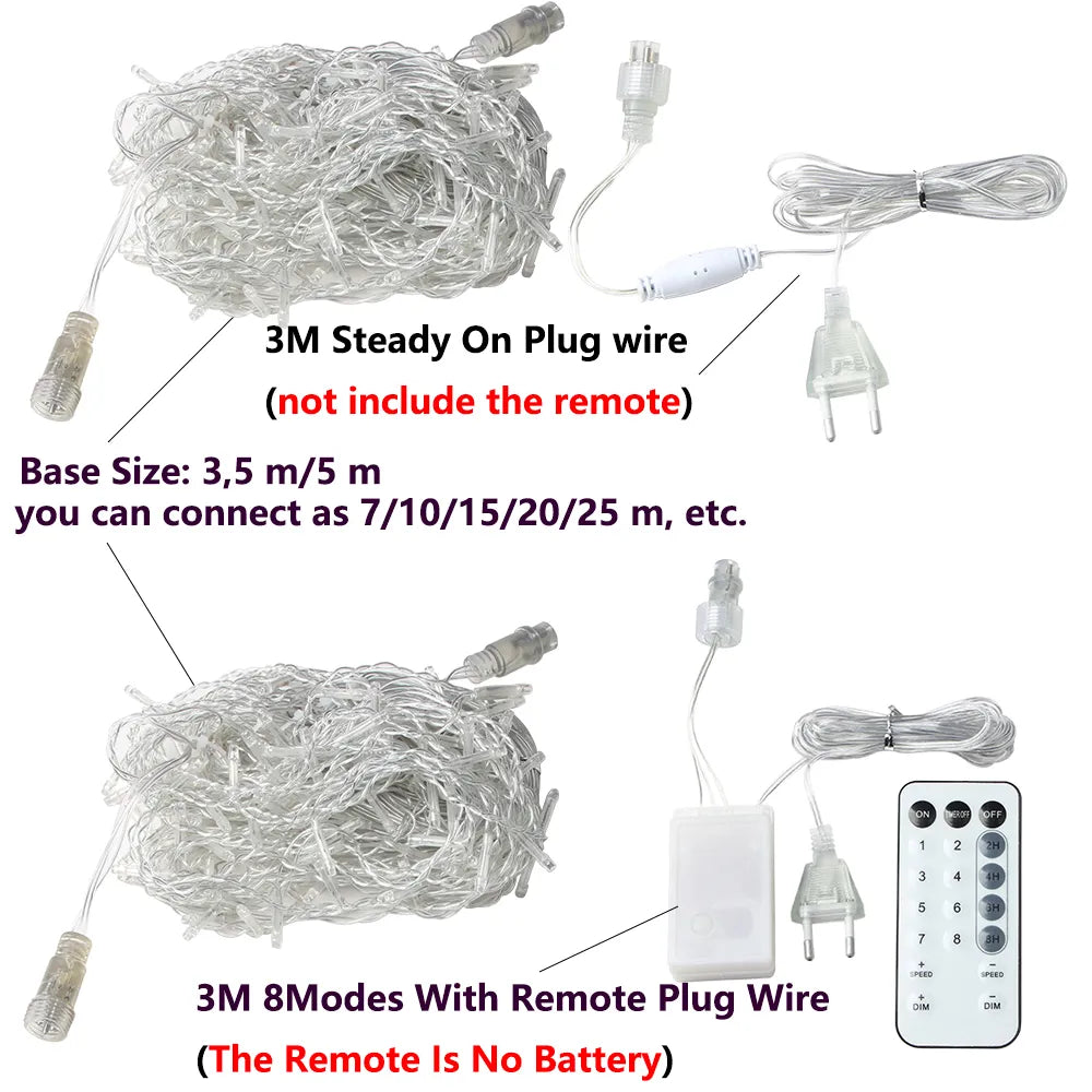 3.5-25M LED Icicle String Lights Christmas Curtain Fairy Lights Garland Remote Outdoor For New Year Wedding Street Holiday Decor