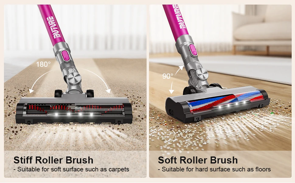 �� 【4-in-1 Multifunctional Vacuum Cleaner】 With the multifunctional cleaning tools and LED lights, the quiet head can rotate 180 ° left / right, and 90 ° up / down. BuTure cordless vacuum cleaner can be used to clean all types of floors, above and below furniture, corners and fabrics. The telescopic extension tube (45cm to 71cm) is suitable for people of different stature.