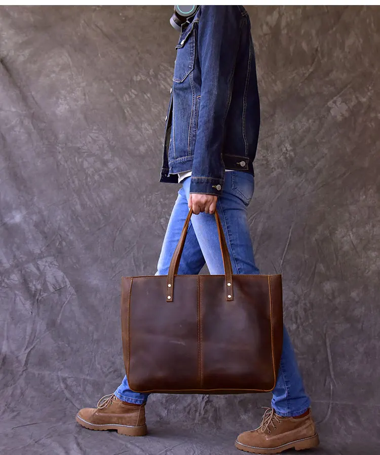5 days arrival, Brand Full Grain Leather Tote Handbag Large Capacity Leather Vintage Top-Handle Shoulder Bag