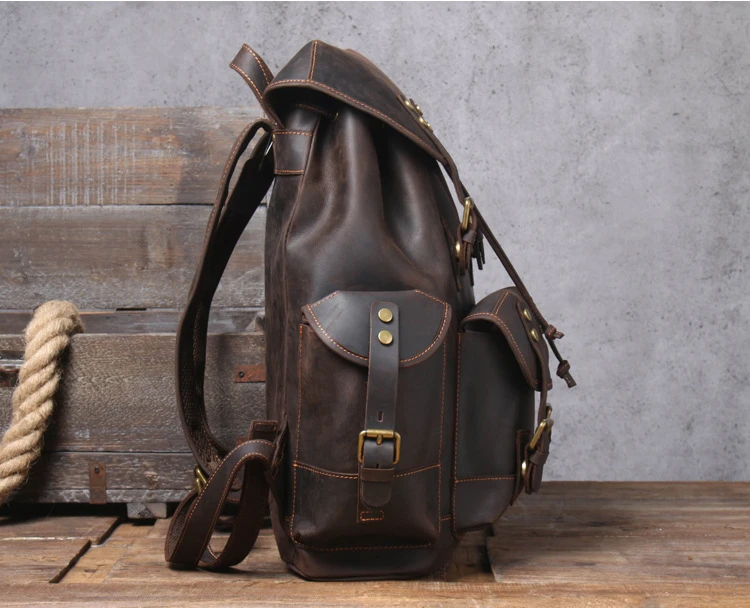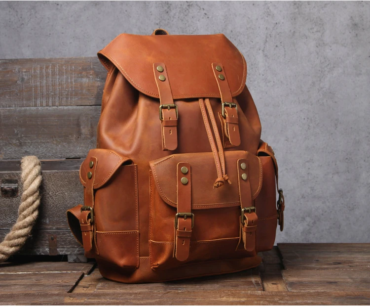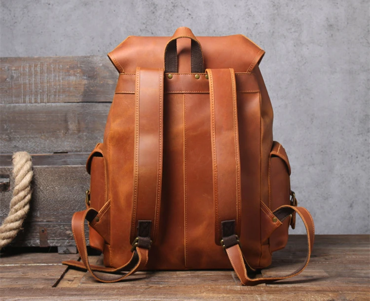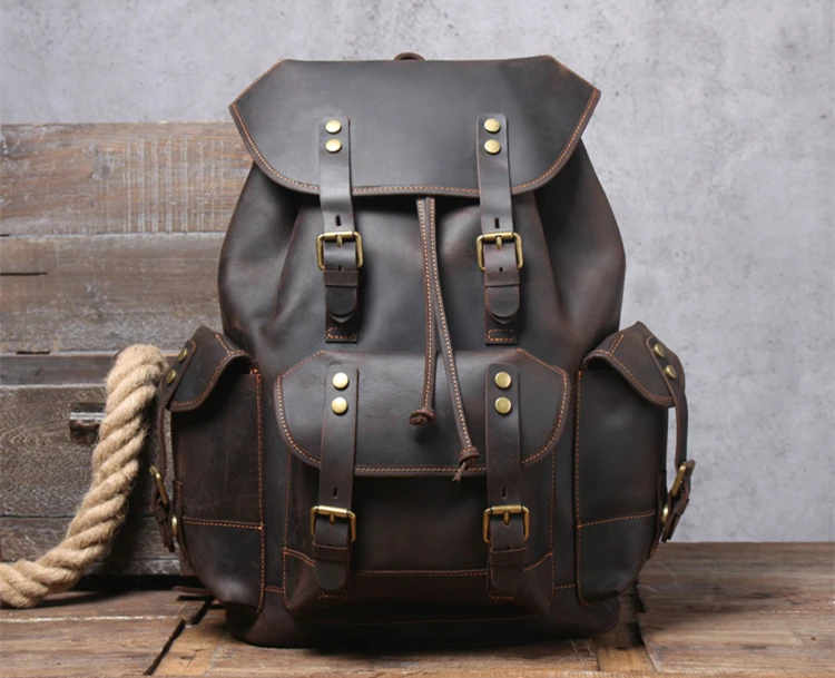 5 days arrival,Men's Vintage Full Grain Leather Backpack Large Capacity Genuine Leather Daypack Laptop Document Cowhide Backpack