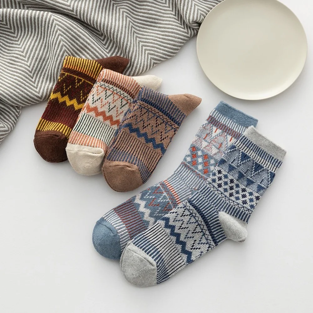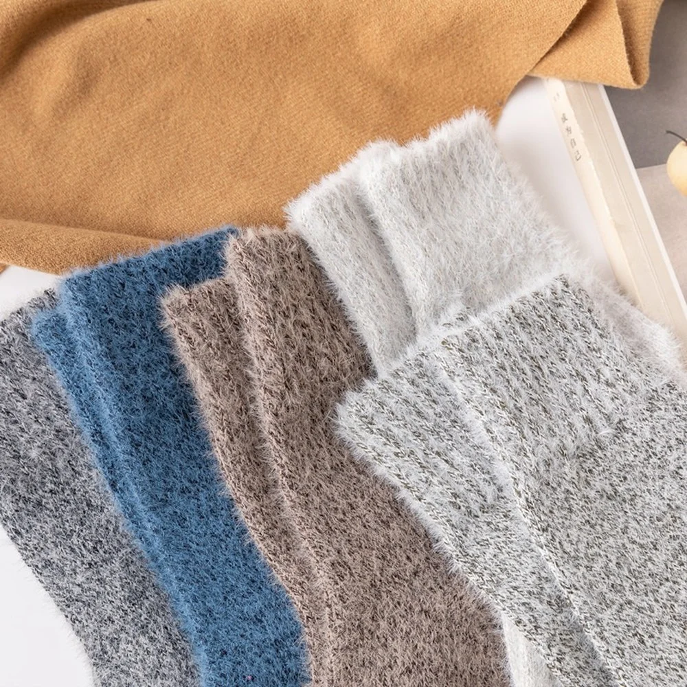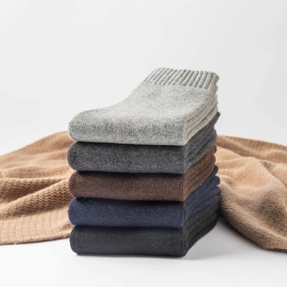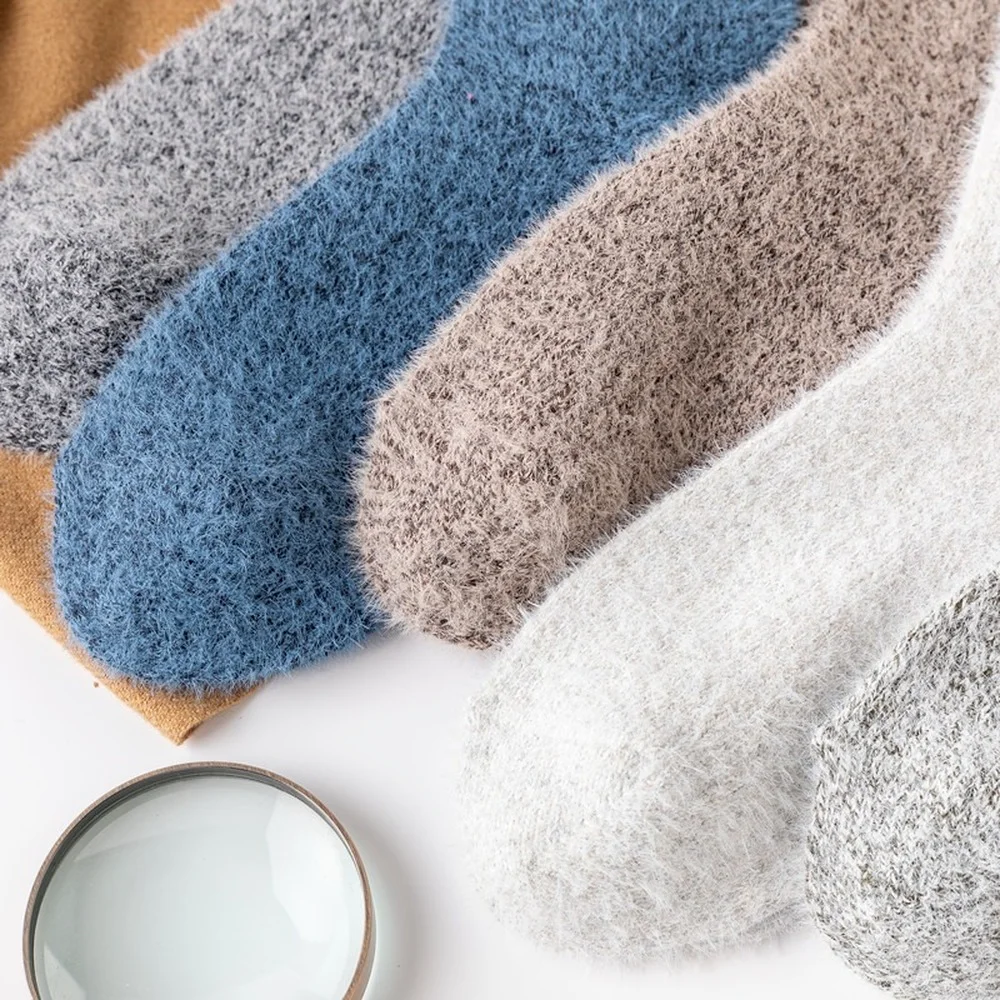 5 Pairs New Autumn and Winter Thicken Warm Men Wool Socks Pure Color Ethnic Imitation Mink Cashmere Casual Men Socks