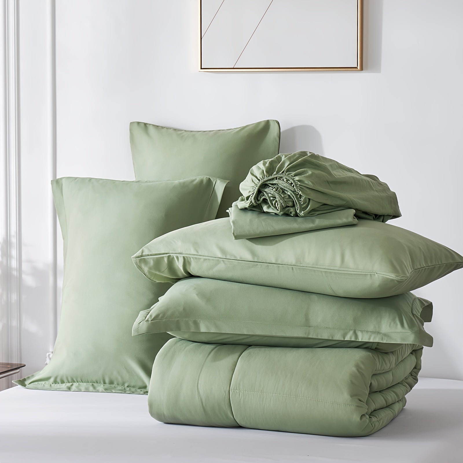 7-Piece Solid Colour Checkered Comforter Set - Soft Microfiber, Lightweight, All-Season, Twin/Full/Queen/King Size Bed In A Bag, Quilt Set With Breathable Fabric And Easy Care
