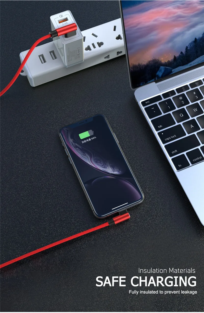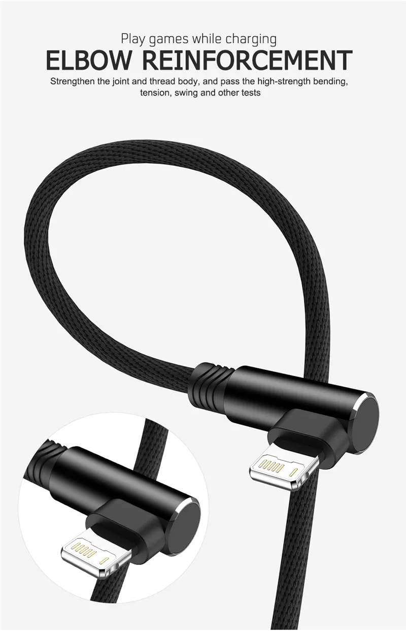 90 Degree Fast Charging USB Charger Cable For iPhone 6 6s 7 8 Plus X XR 11 12 13 Pro Max SE 2 iPad Origin Data Cord Long Wire 3m