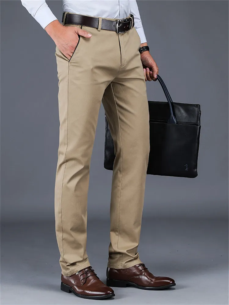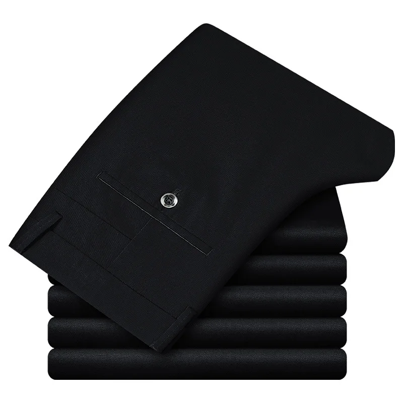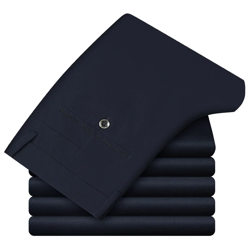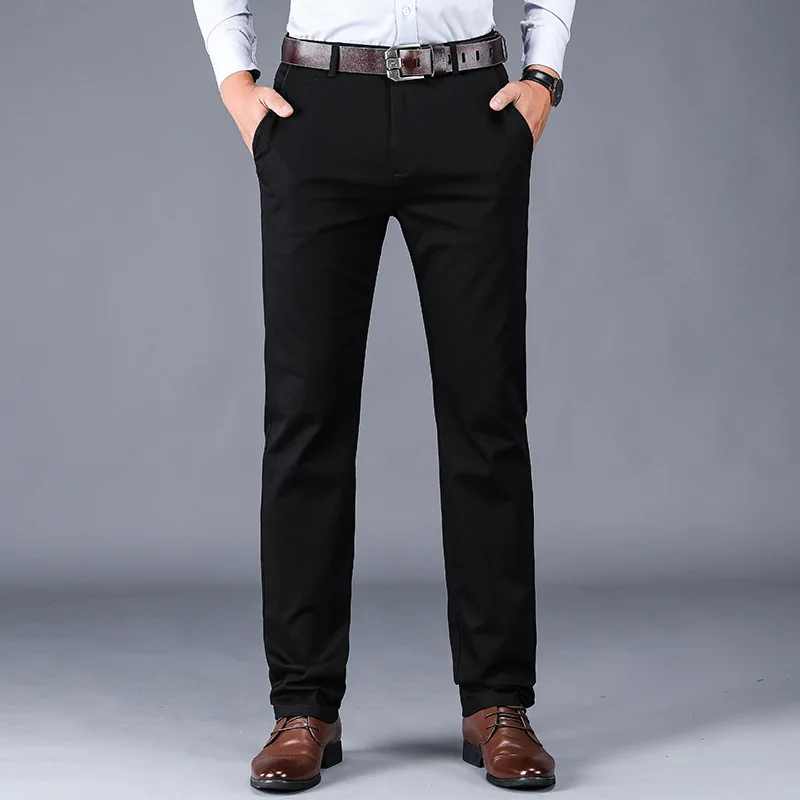 98% Cotton Casual Pants Men High Waist Elastic Straight Loose Trousers Mens Solid Color Business Dress Pants Brand Man Clothes