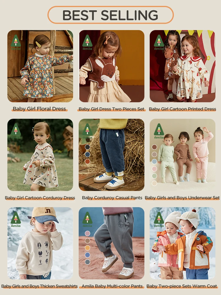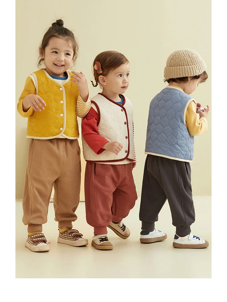 Amila Baby Pants 2022 Autumn New Solid Color Cotton Boys and Girls Trousers Cute Cartoon Casual Children Clothes Fashion