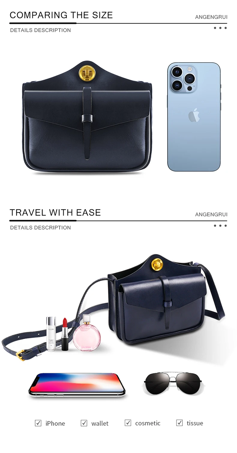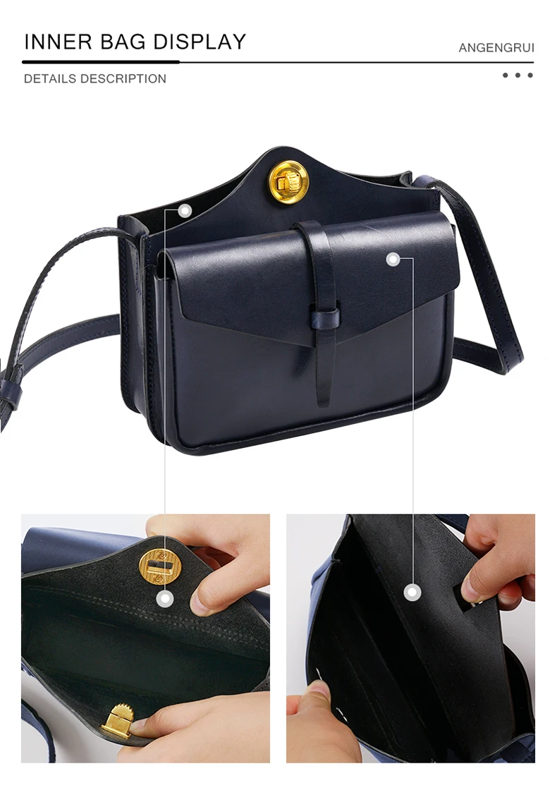 ANGENGRUI First Layer Cowhide women's Bag Simple and Exquisite Shoulder Bag Handmade Messenger Bag