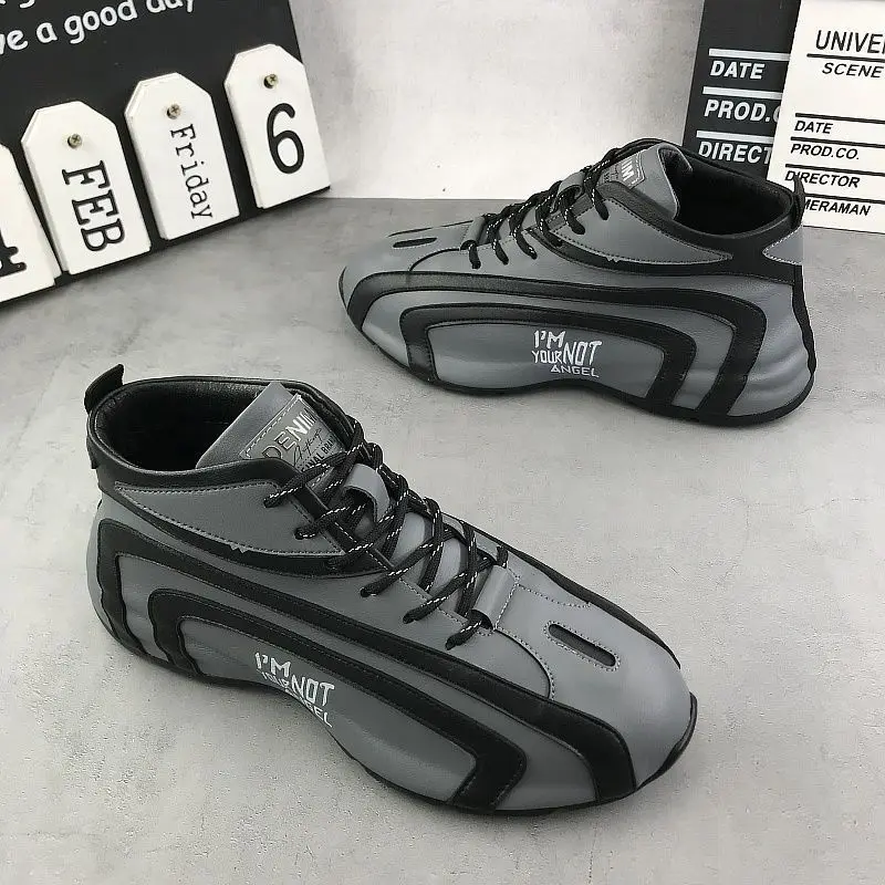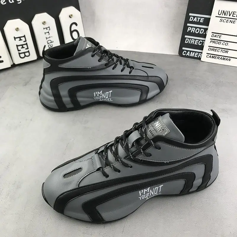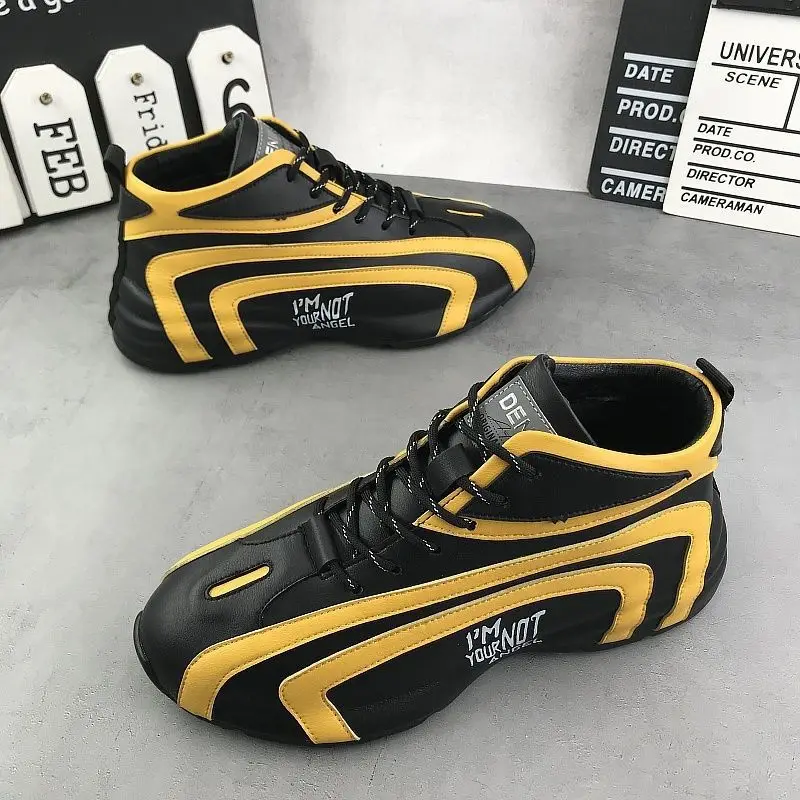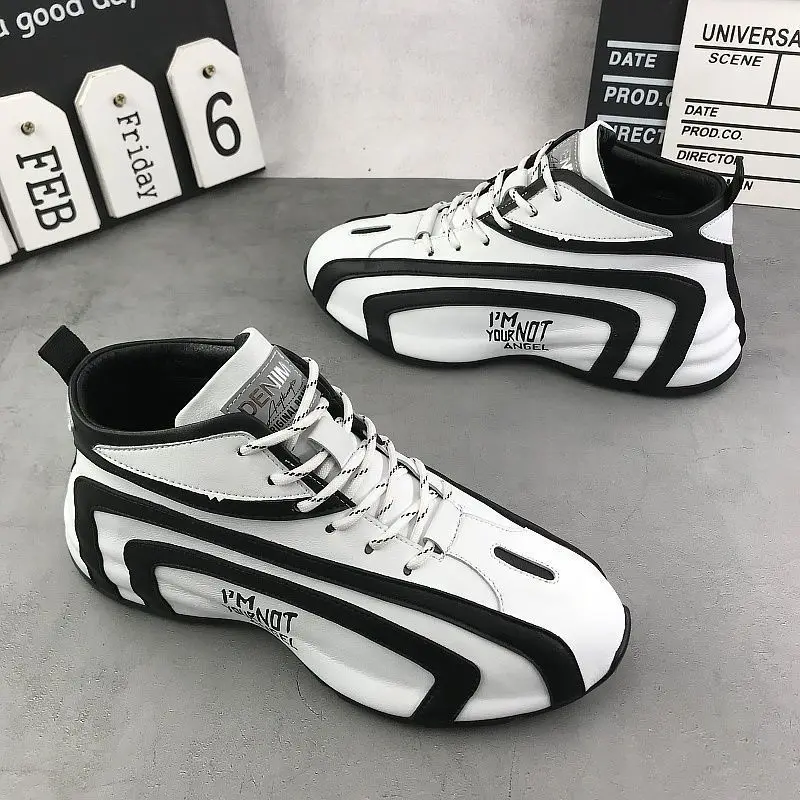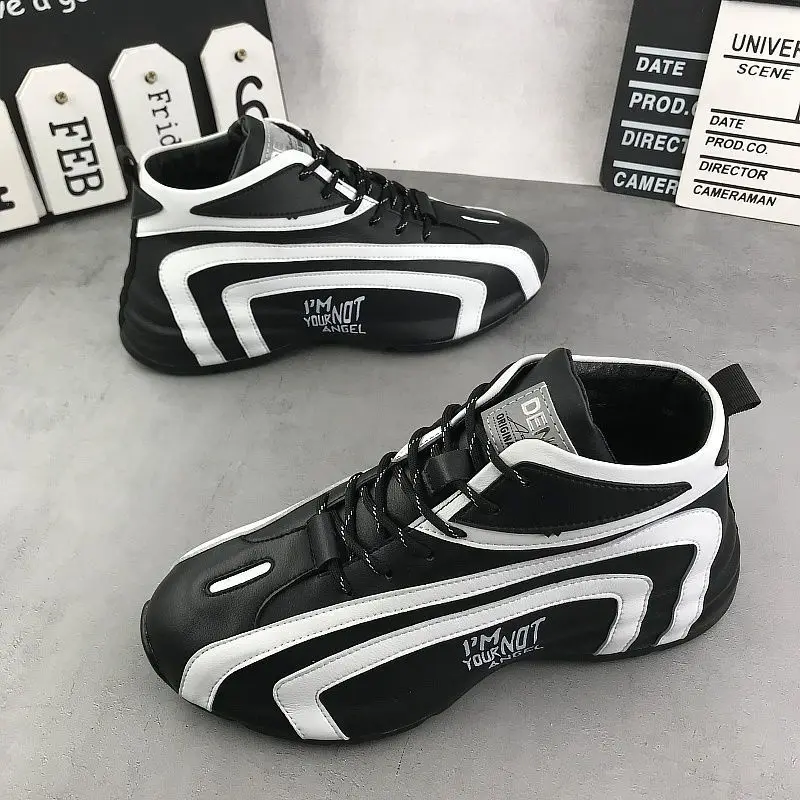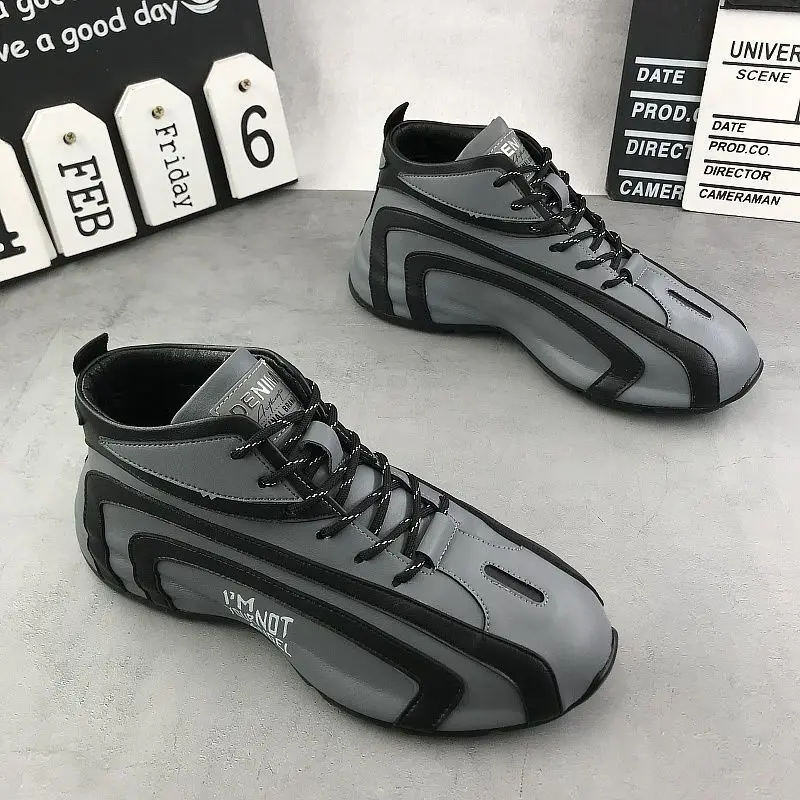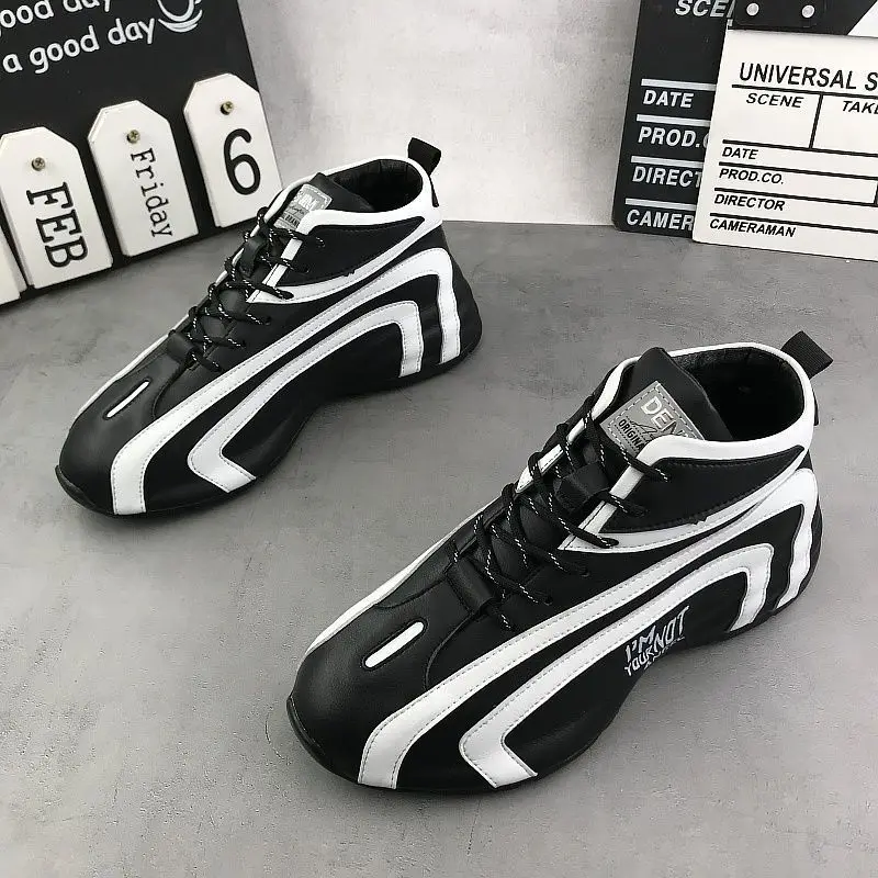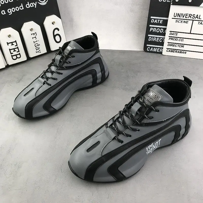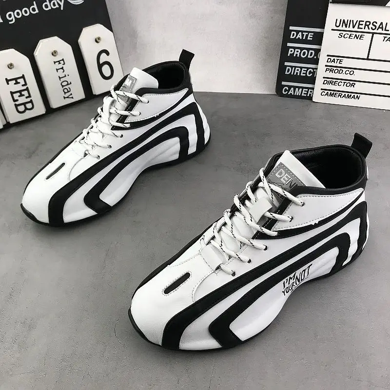 Autum Winter Striped Design High Top Men Shoes Casual Fashion Leather Waterproof Chunky Sneakers Increased Platform Running Shoe