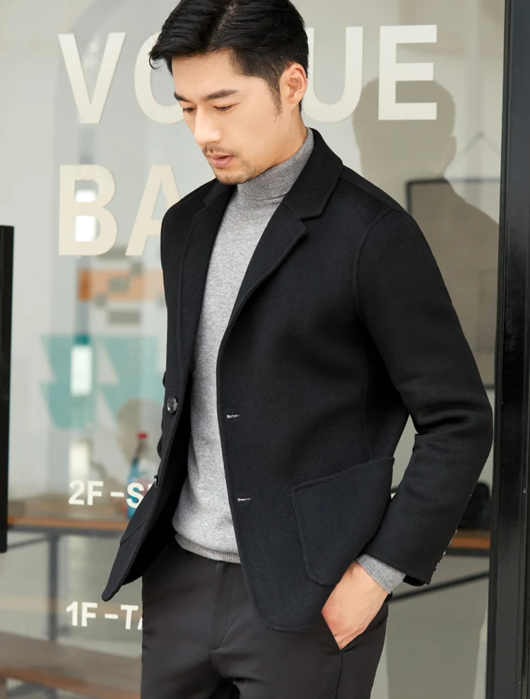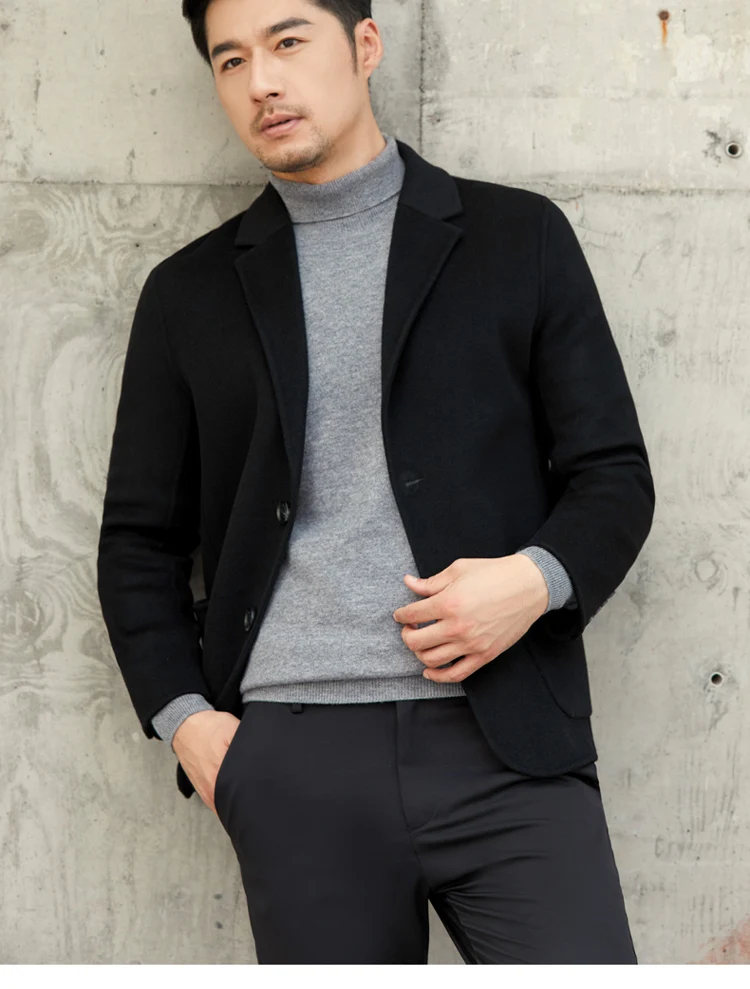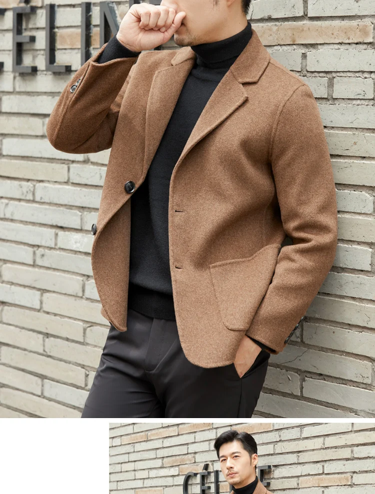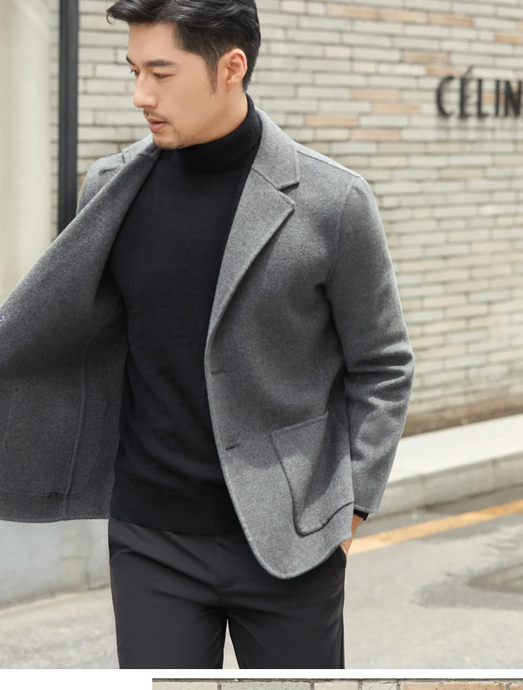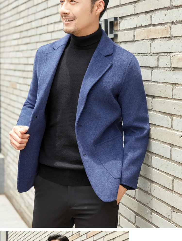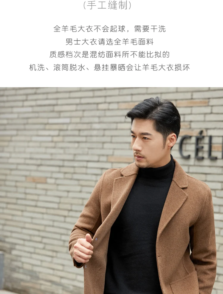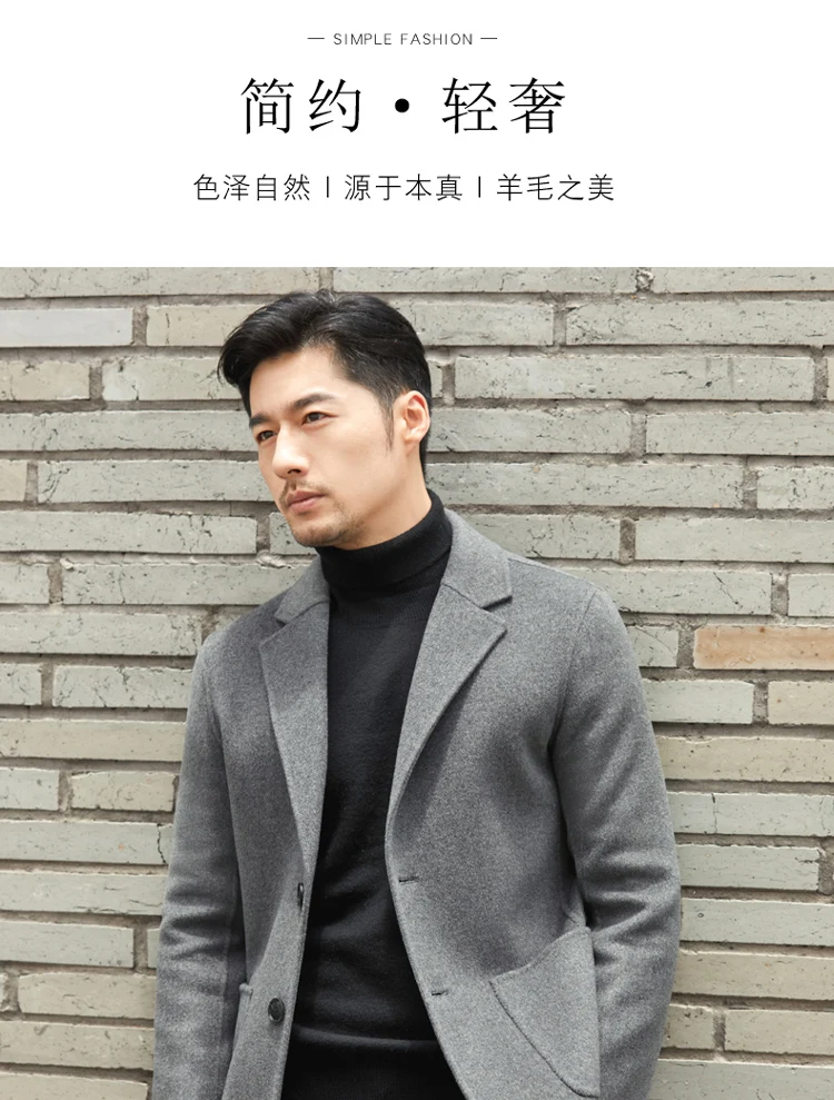 Autumn And Winter 2022 New 100% Australian Pure Wool Coat Medium Ength Casual Business Versatile Reversible Coat Men
