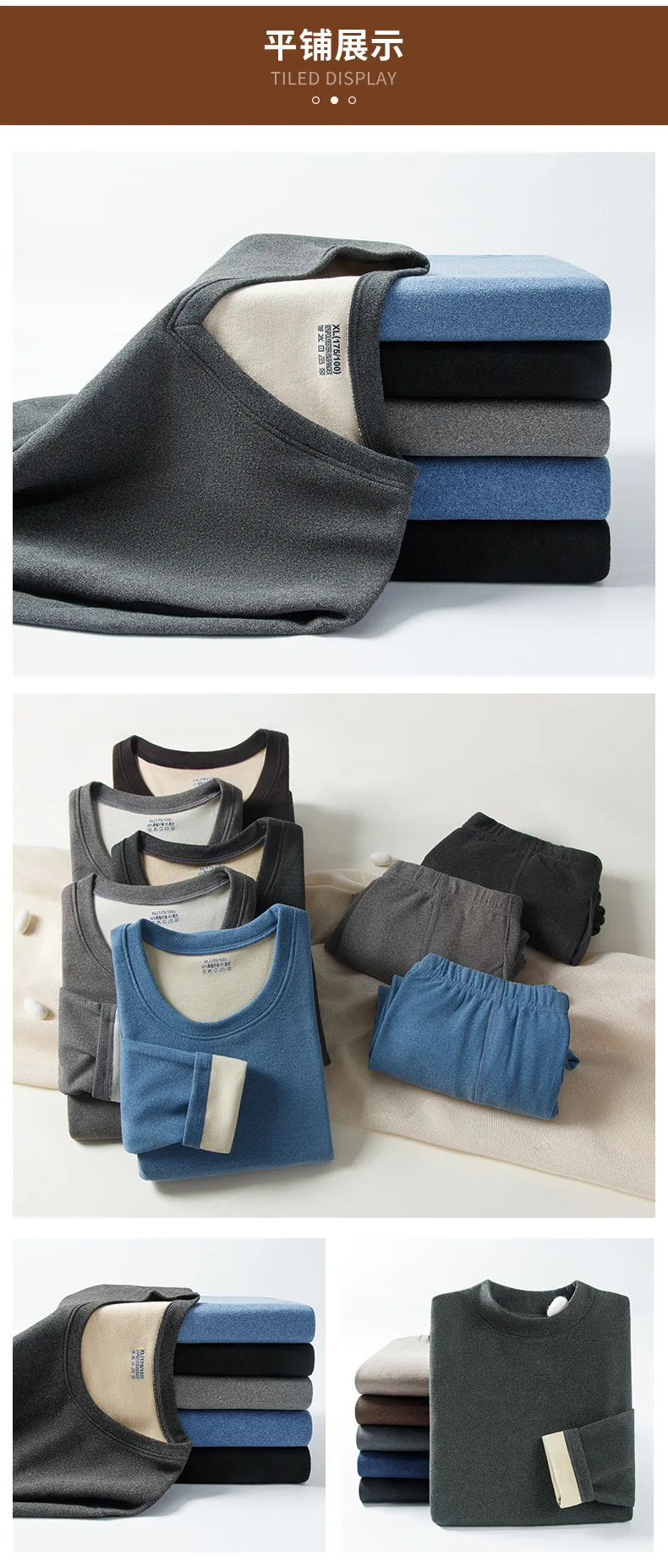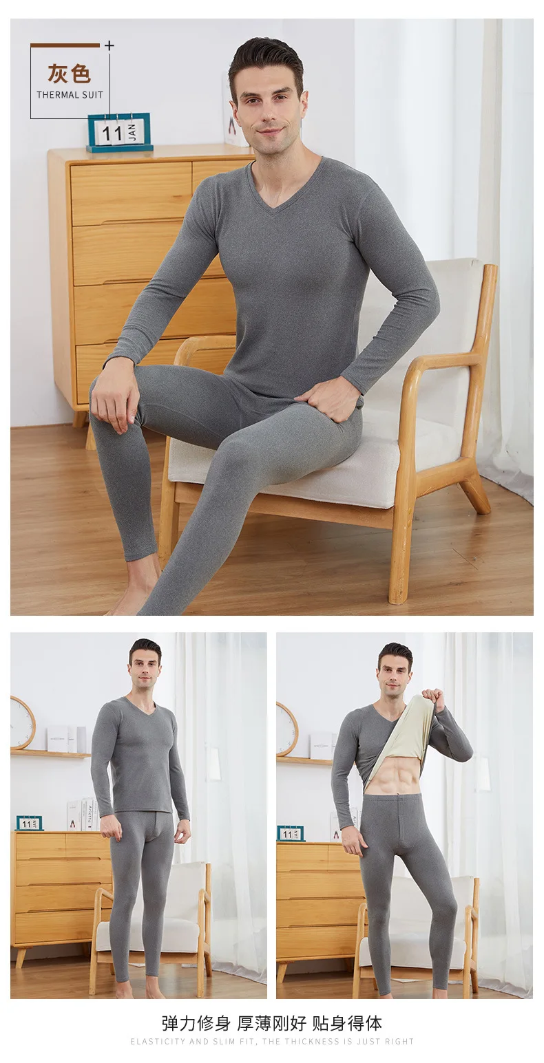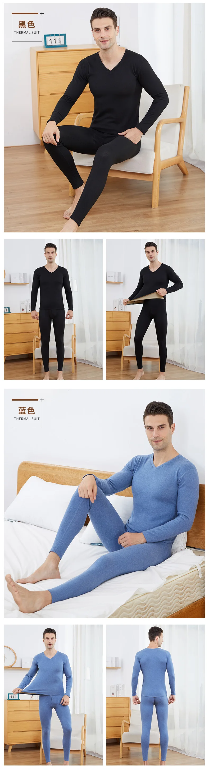 Autumn Winter Men's Fleece Thermal Underwear Suit Thicken High Stretch Winter Warm Base Layers Tight Long Johns Tops & Pants Set