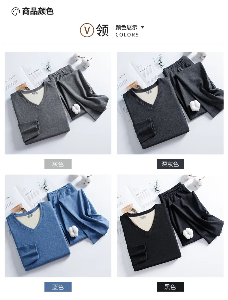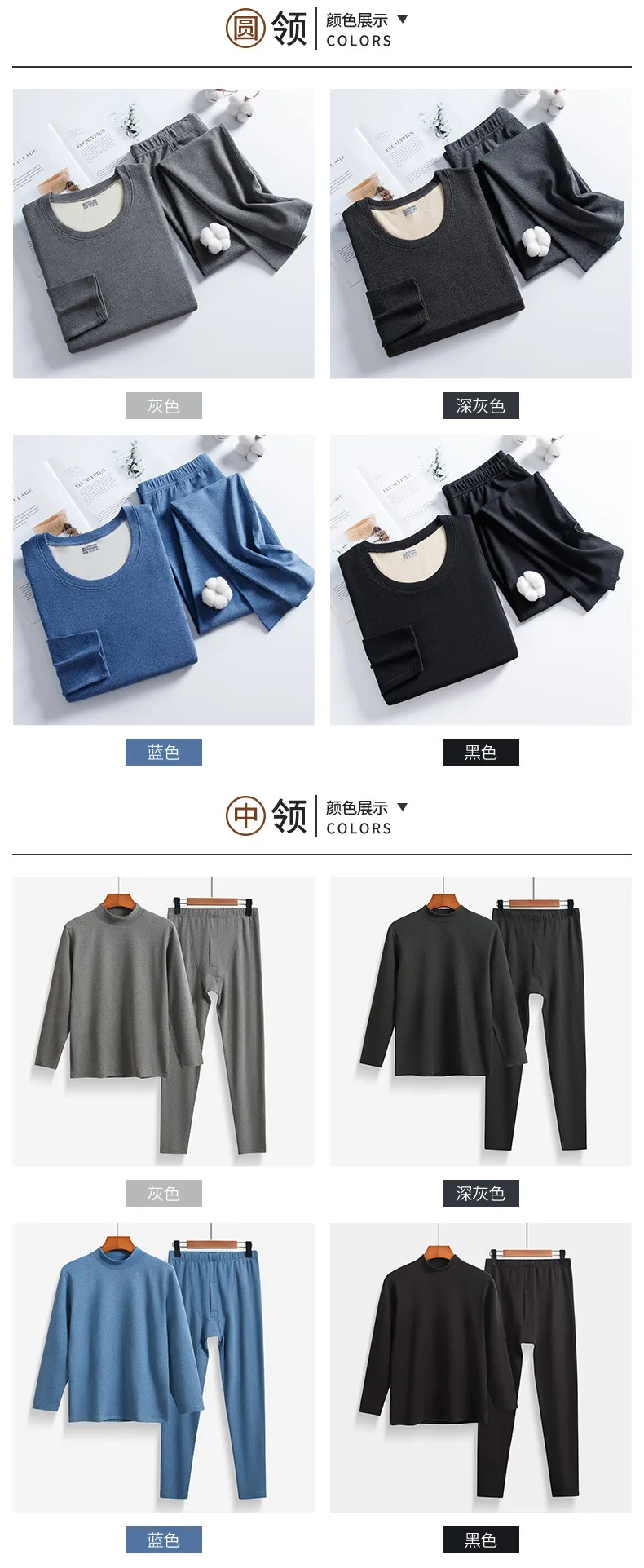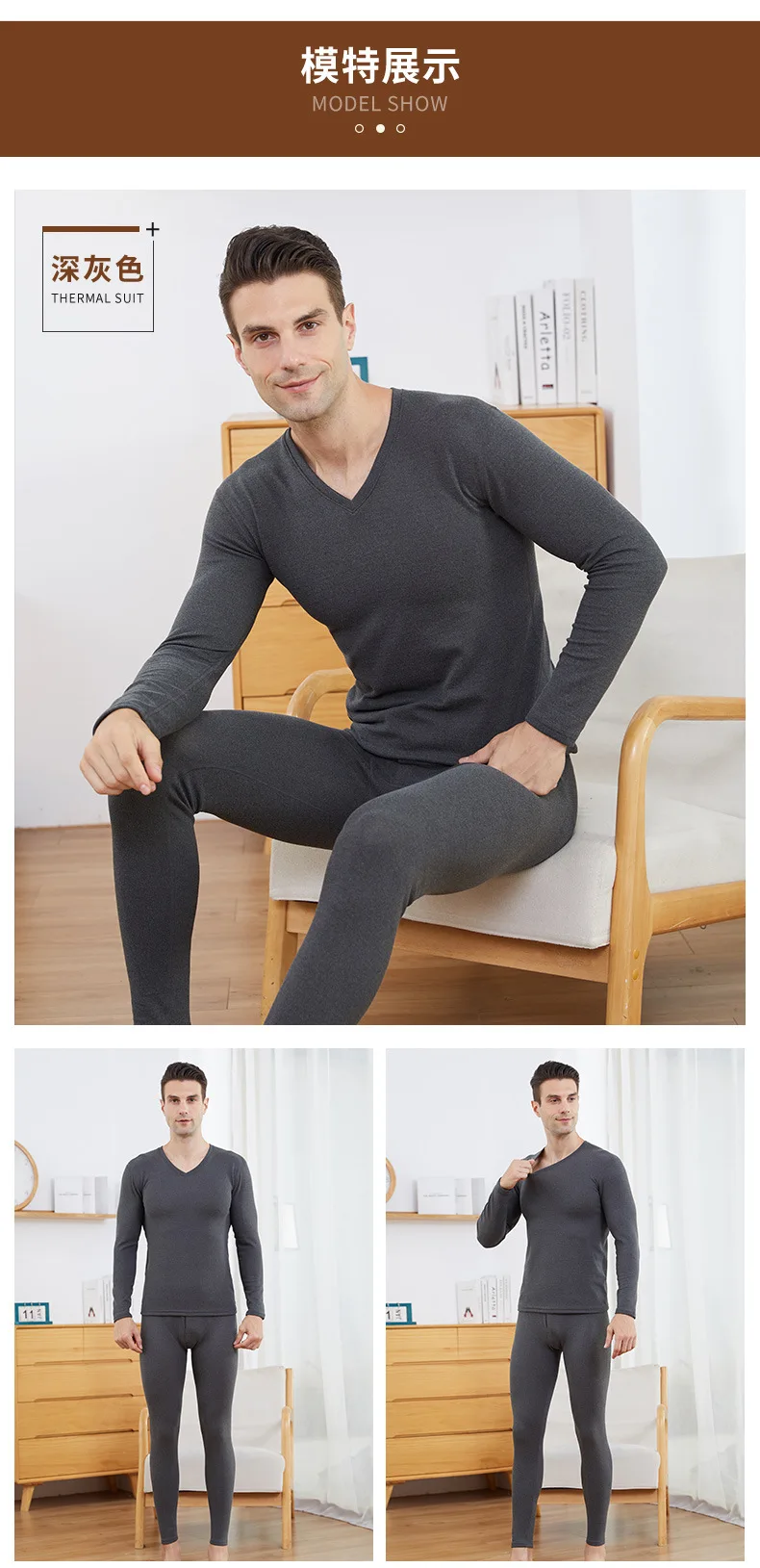 Autumn Winter Men's Fleece Thermal Underwear Suit Thicken High Stretch Winter Warm Base Layers Tight Long Johns Tops & Pants Set