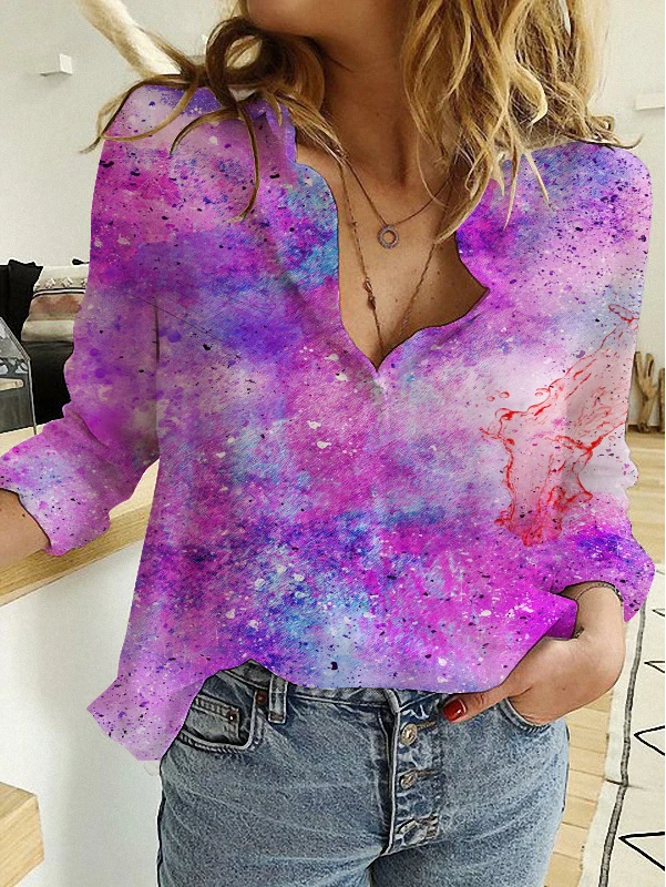 Autumn Women Print Simple Single Breasted Shirt Lady Long Sleeve Office Blouses Harajuku Aesthetic Vintage Oversize Female Tops
