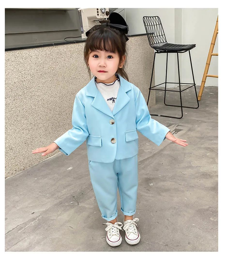 Baby Girl Suit Set Solid Color Girls Clothing Jacekt + Pants Girls Clothing Sets Spring Autumn Kids Suit Set