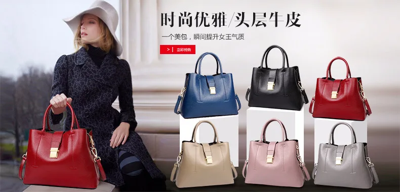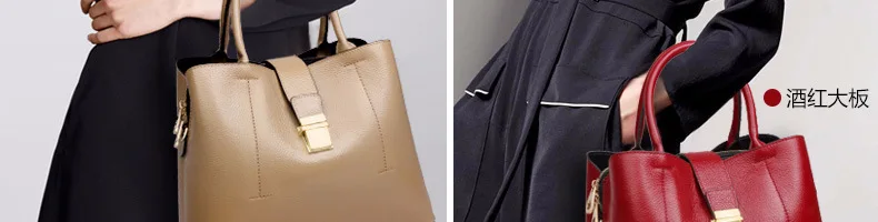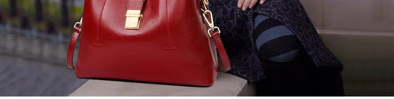 Bag Female 2021 Genuine Leather Bucket Bag Handbag Large Capacity Shoulder Bag Fashion Red Black All-Match Messenger 32*14*23