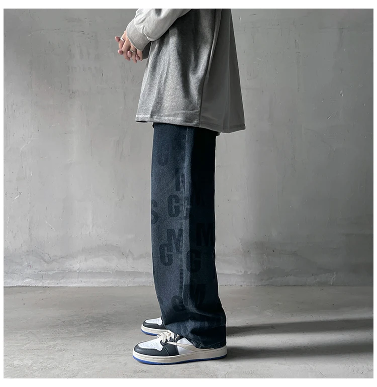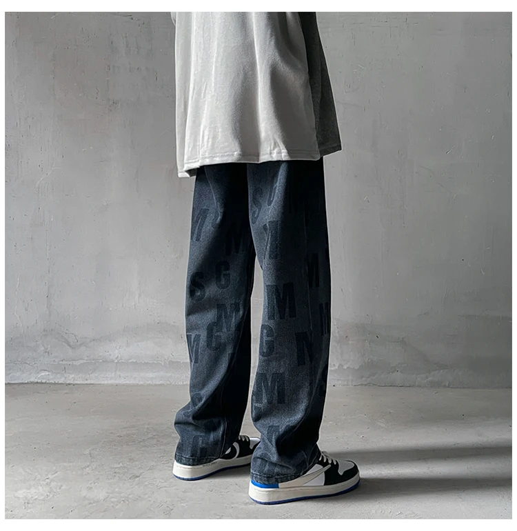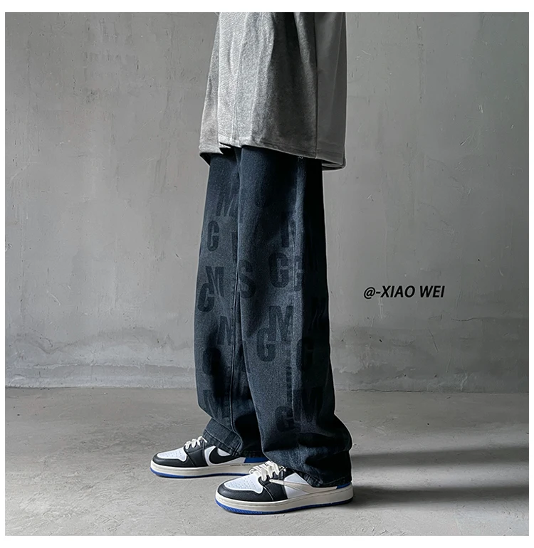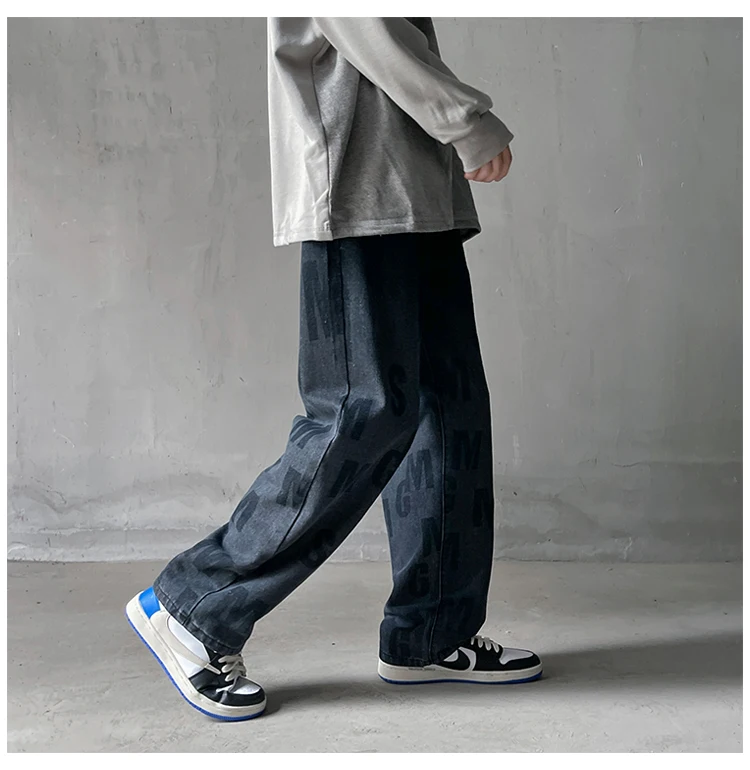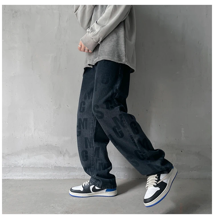 Black/Blue Men Streetwear Casual Letter Printed Jeans Autumn New Loose Straight Denim Pants Harajuku Male Jean Pants Trousers
