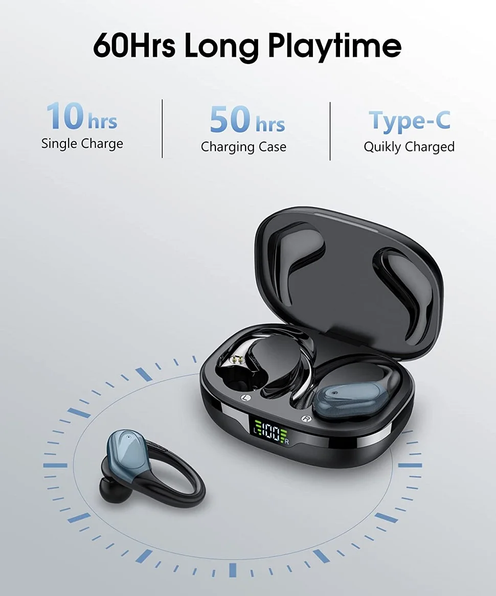 Bluetooth 5.1 Earphone LED Display Ear Hooks TWS Wireless Headphones 9D Stereo Earbuds Sports Waterproof Headsets With Micrphone