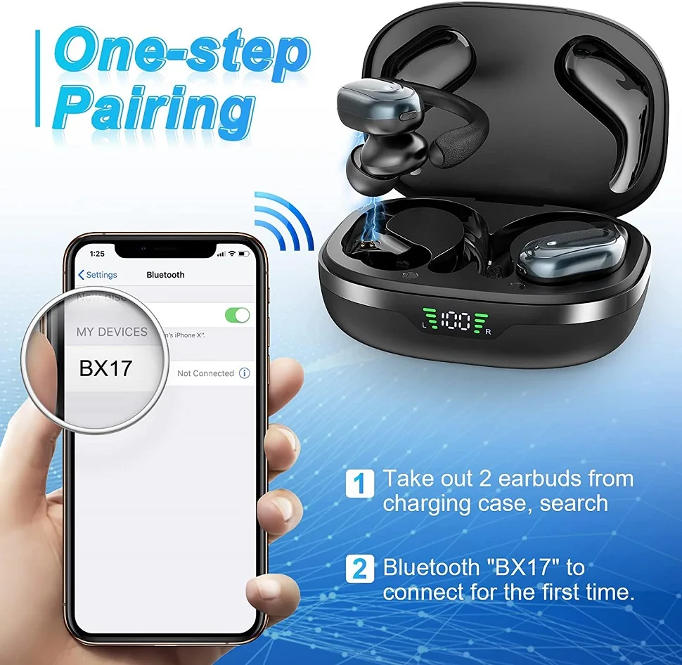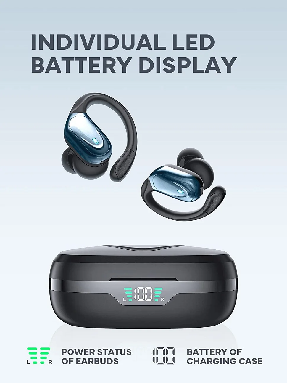 [LED Digital Power Display] : Wireless earbuds with LED display to clearly show the battery level of the charging case and earbuds.