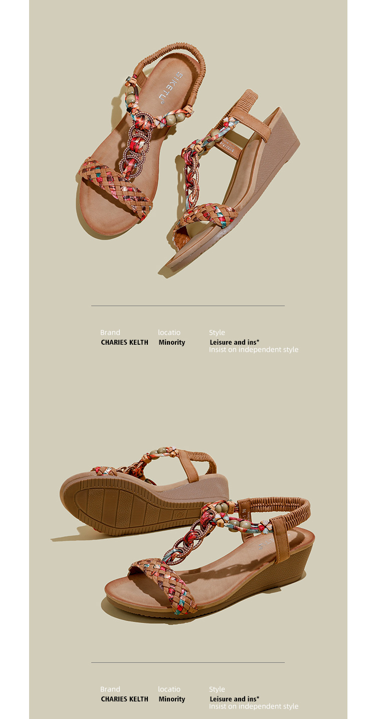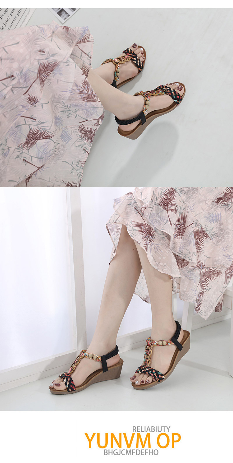 Bohemian Thick Sole Beaded 41-43 Wedge Sandals