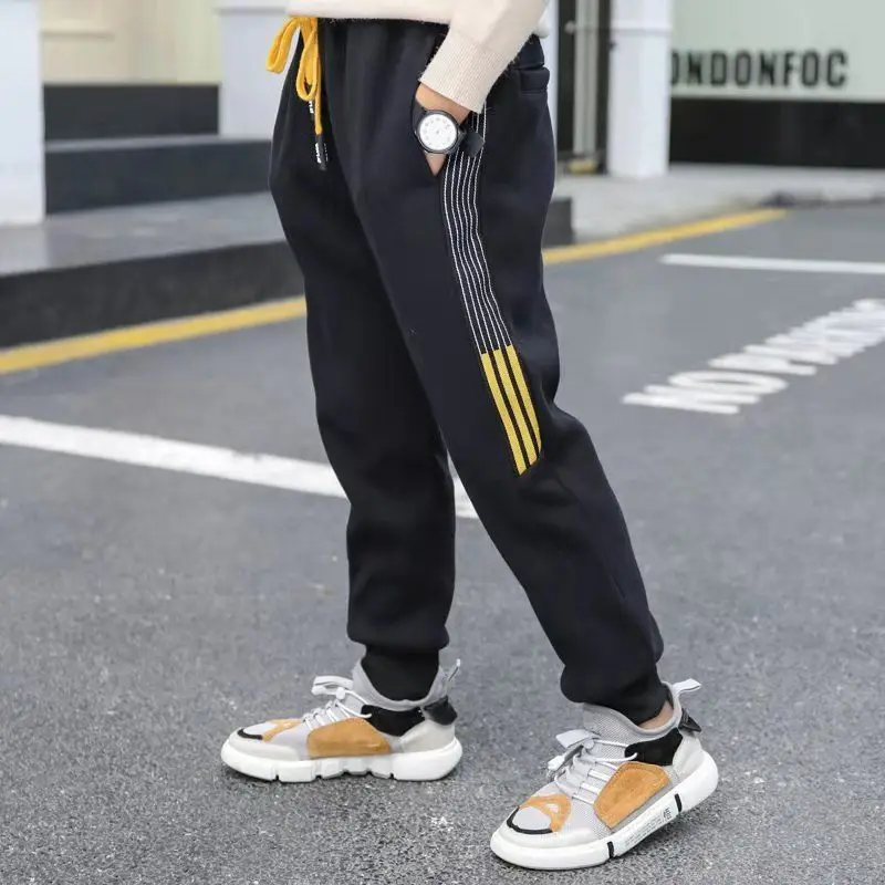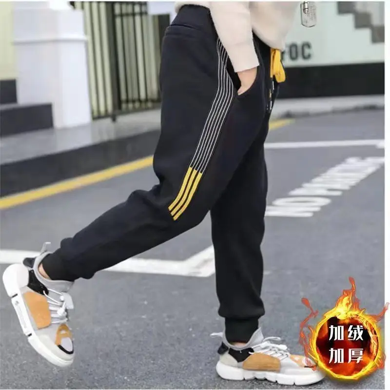 Boys Pants Winter Thicken Warm Plus Velvet Pants Girls Kids Trousers Children Sport Pants Casual Loose-fitting Trousers Fashion