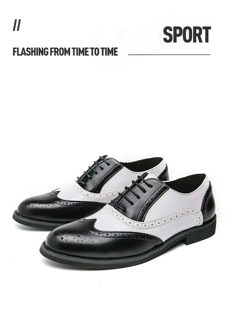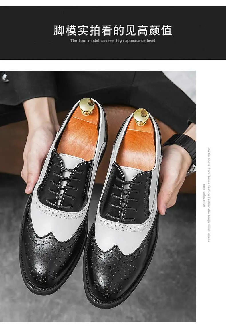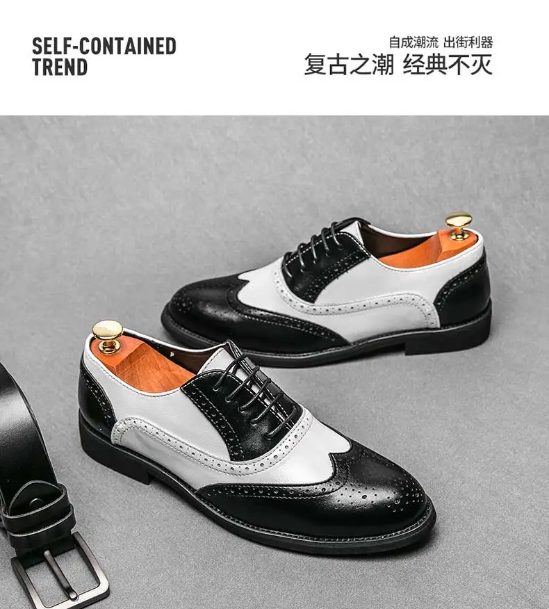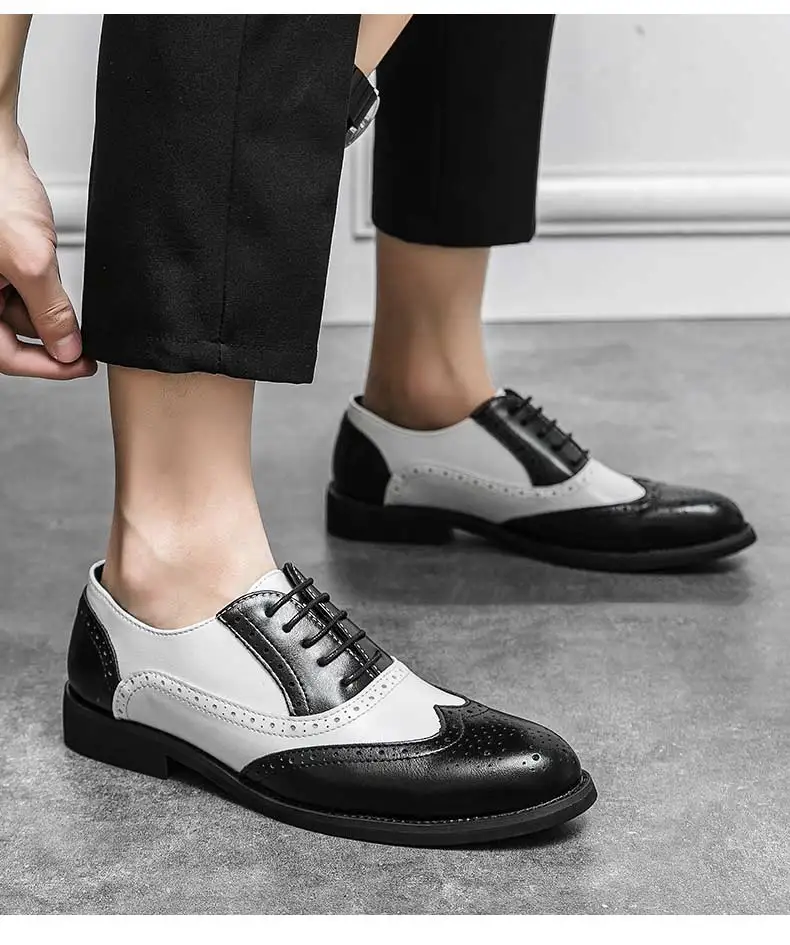 Brogue Shoes for Men Black White Lace-up Round Toe Men's Formal Shoes Handmade Size 38-48 Men Shoes