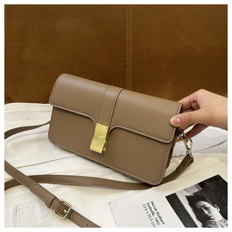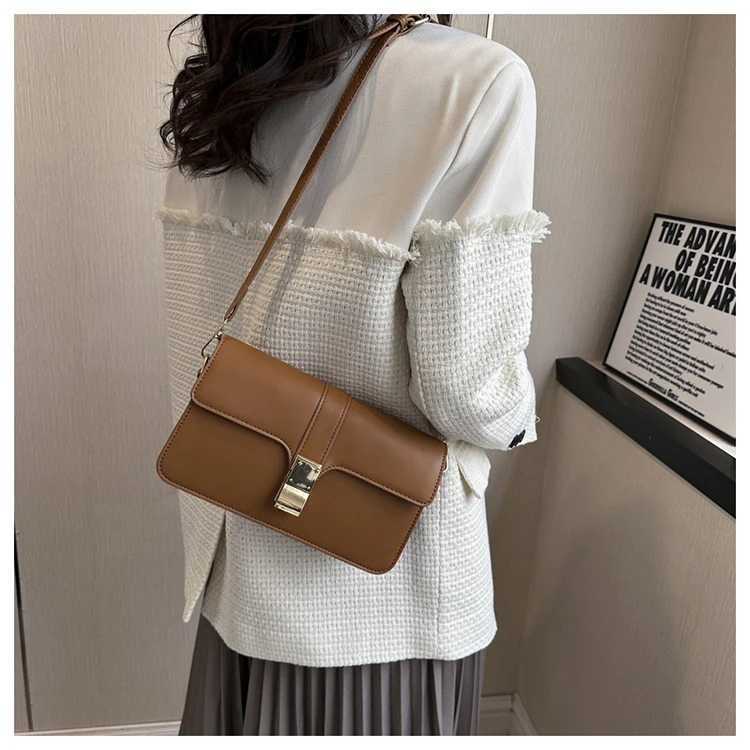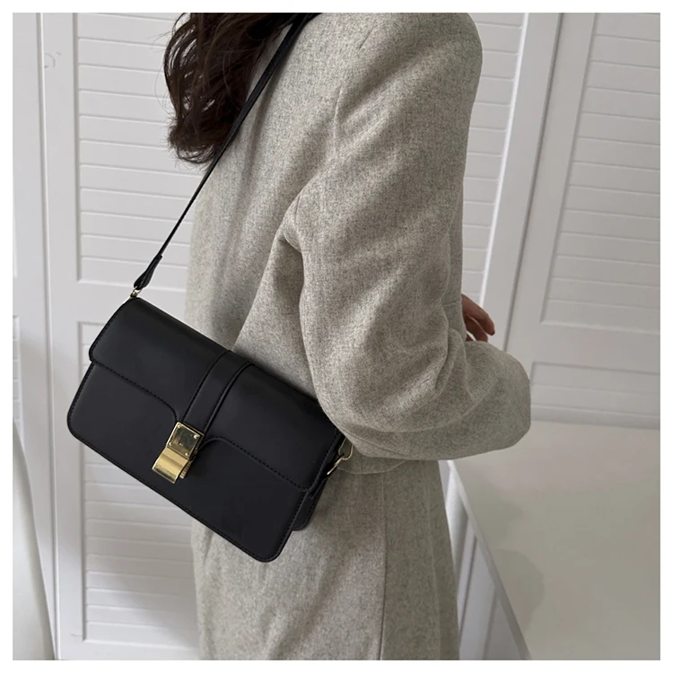 Casual Designer High Quality Small Flap Shoulder Bag Simple Pure Color Elegant Branded Handbag All Match Pu Leather Ladys Clutch