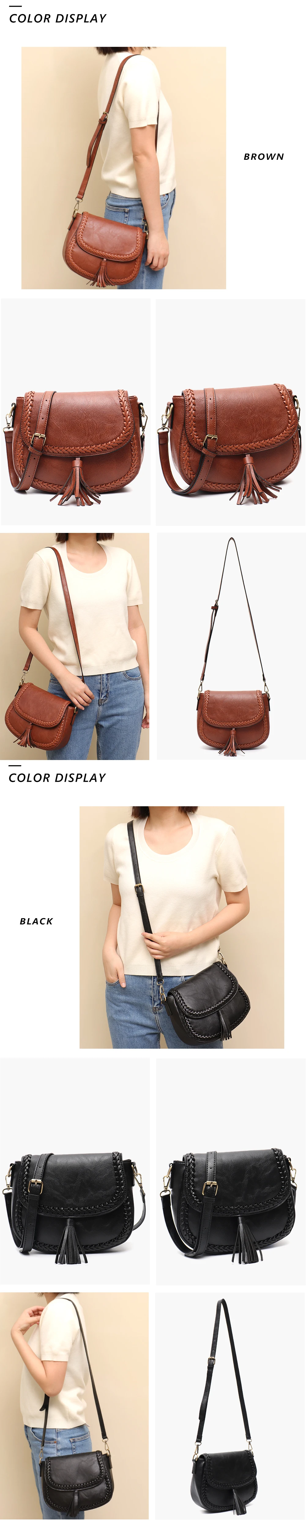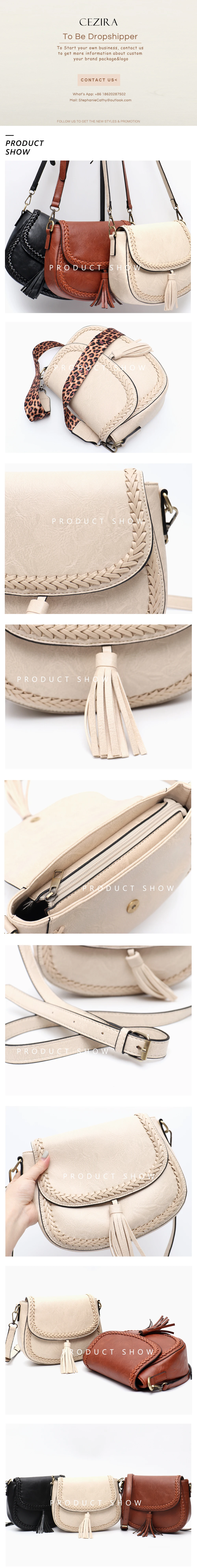 CEZIRA Bohemia Style Vegan Leather Saddle Bags Women Vintage Causal Braid Tassel String Flap Snap Messenger Shoulder Handbags