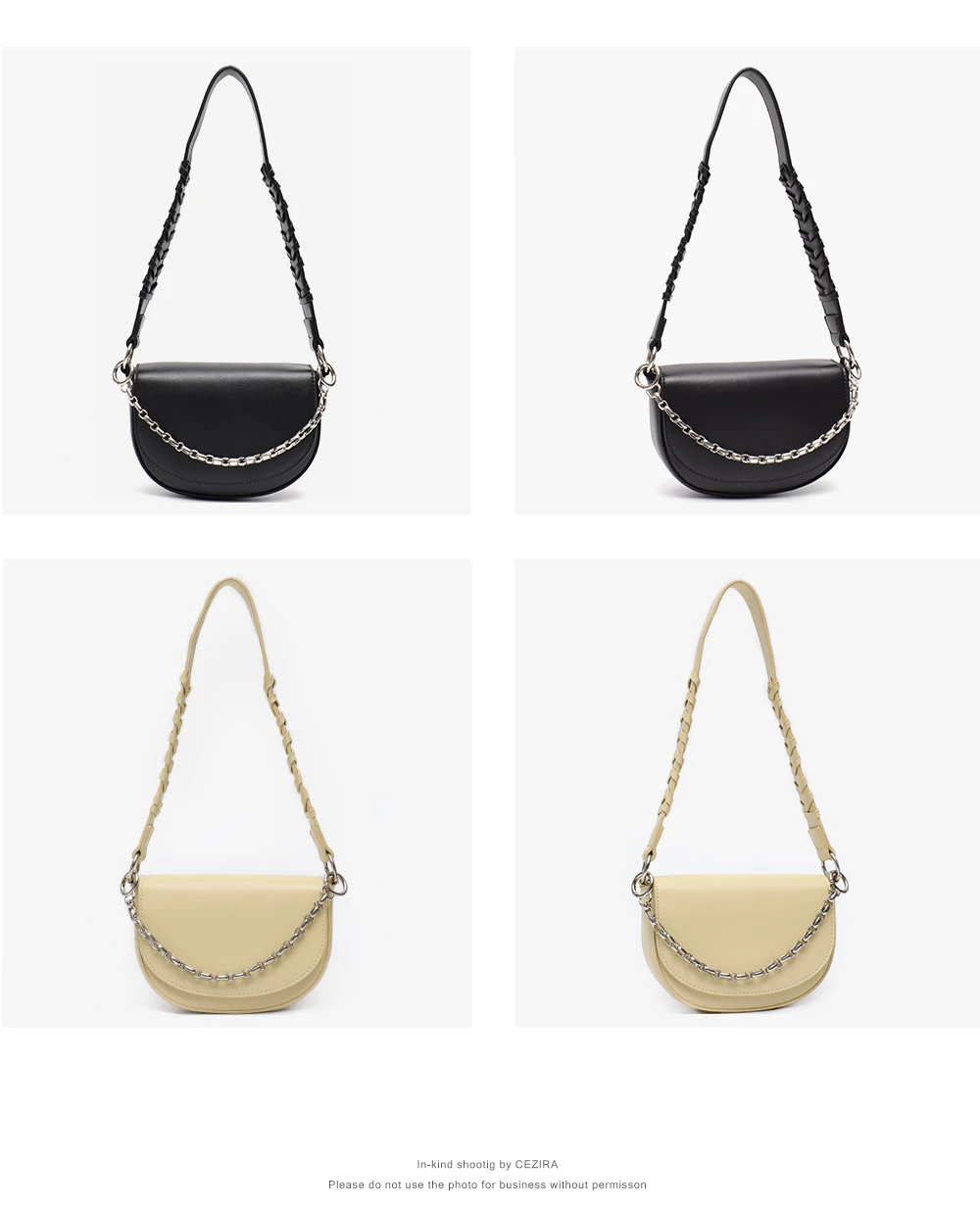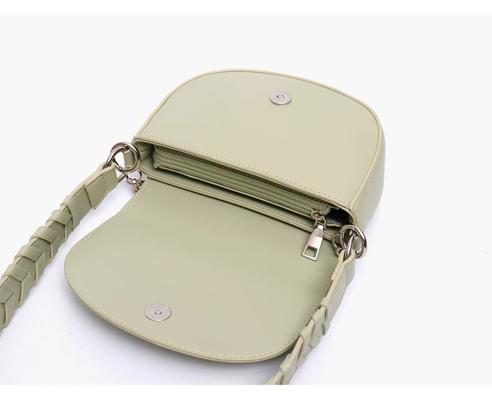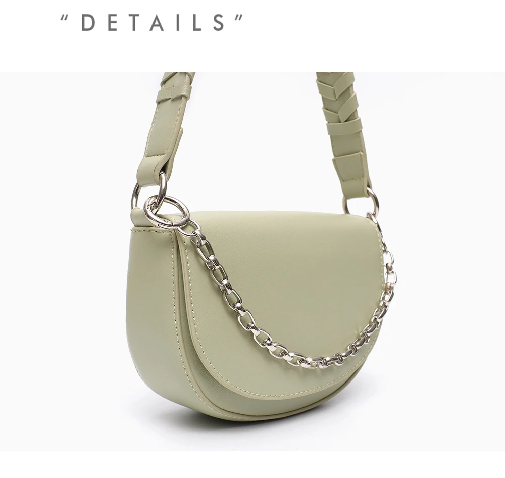 CEZIRA Fashion PU Vegan Leather Handbag For Women Luxury Chain Flap Shell Shoulder Bags Braid Strap Half-moon Female Small Purse