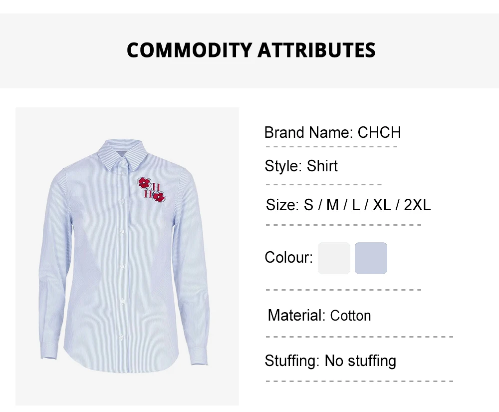 CHCH FAMILY 2023 New Summer Women's Slim Shirts Blouse Classic Full Sleeve Fashion Embroidery Business Office Lady Blouses