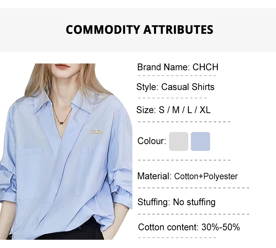CHCH Fashion New Designer Style Shirt Women's 2023 Long Sleeve Loose Thin Light Luxury Top Women's Shirt