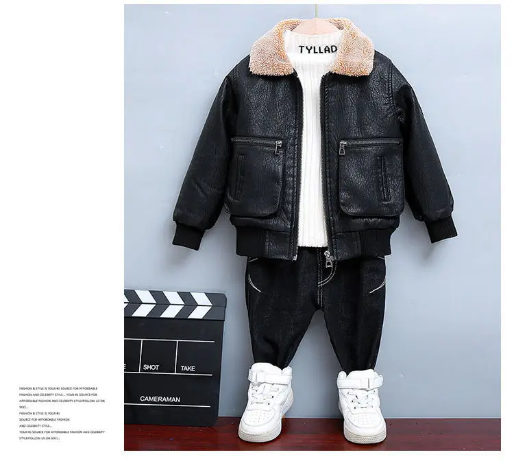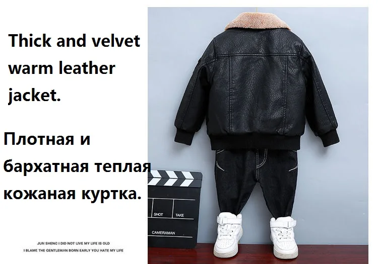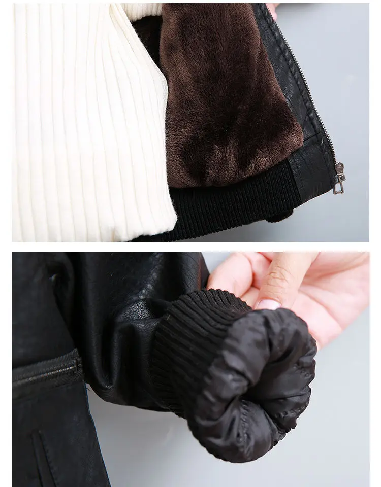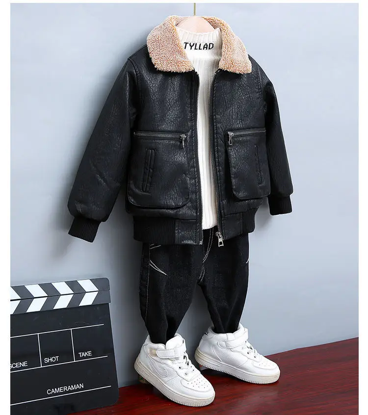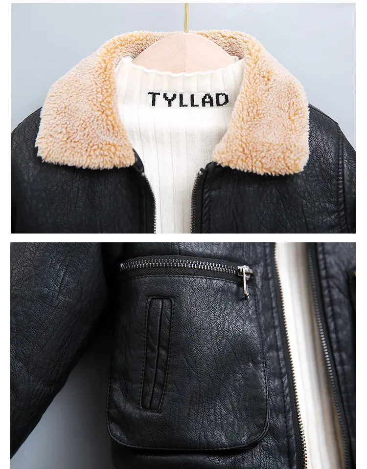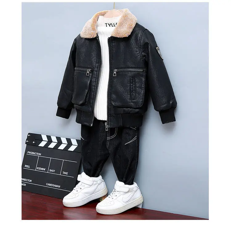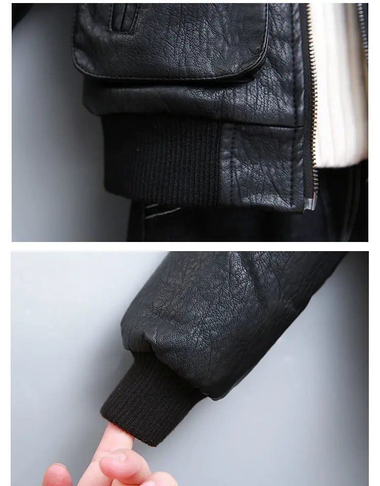 Children's Clothing Boys Coat Autumn Winter Lapel Plus Velvet Thick Leather Jacket For Boys Child Outwear PU Jacket Kids Tops