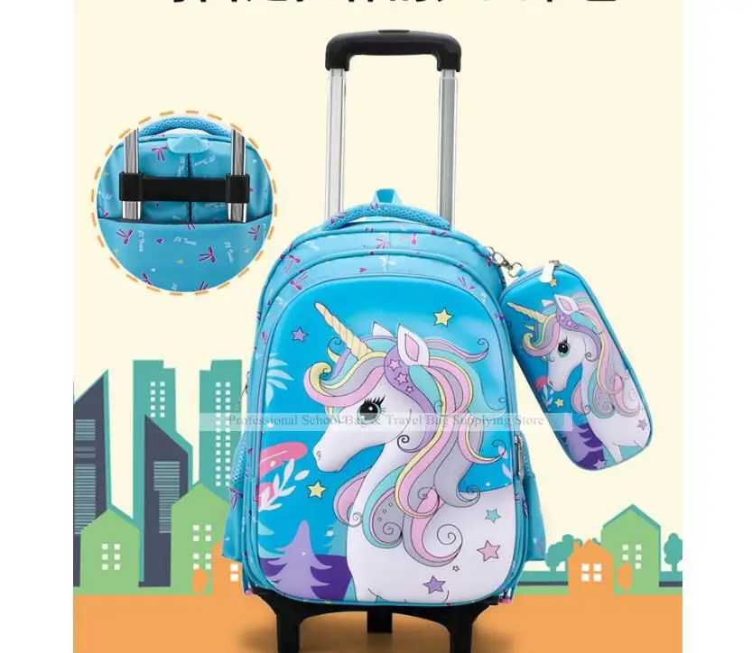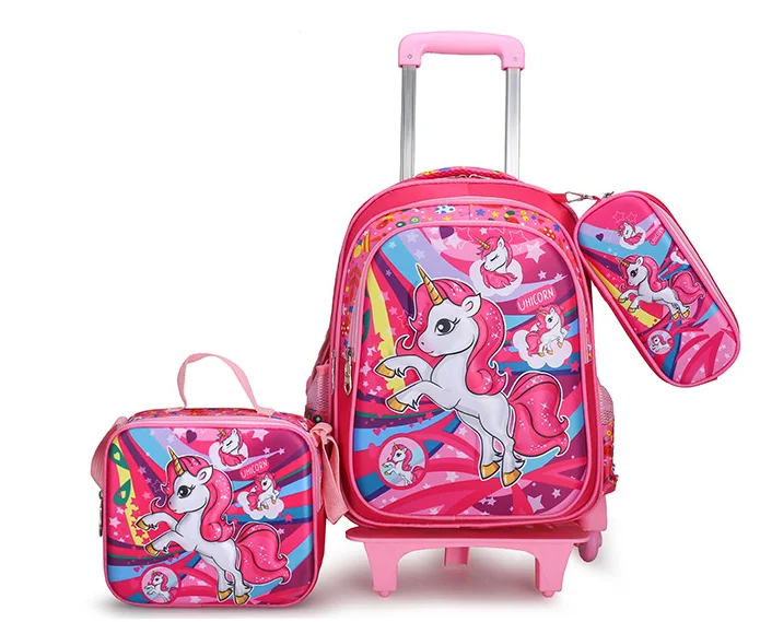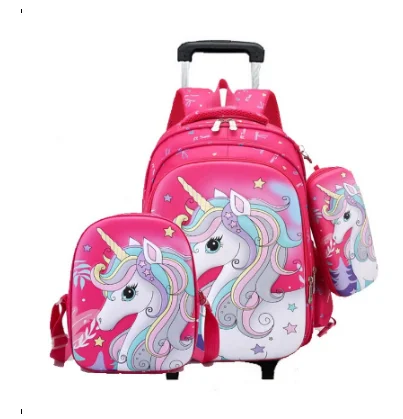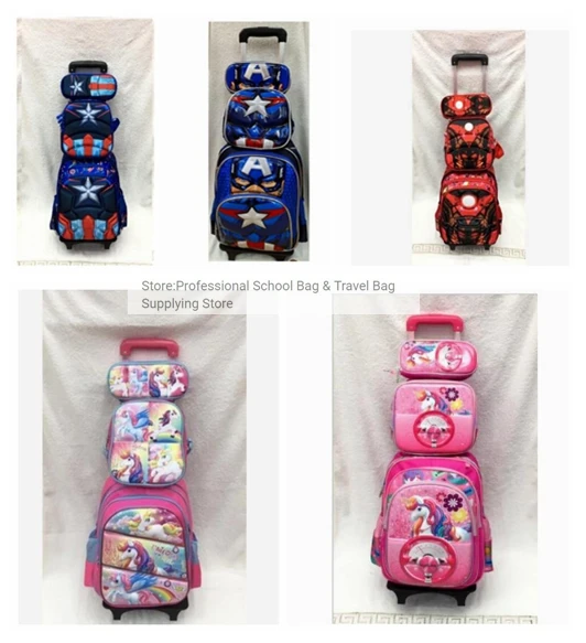 Children backpack with Wheels Trolley Bag For School Rolling backpack Bag For girl boy school kids trolley wheeled Backpack set